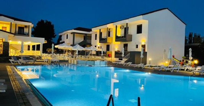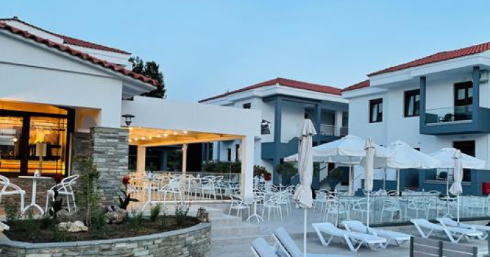 The hotel is situated in Nikiti, Chalkidiki, a very beautiful and picturesque village in Sithonia, forming a complex of four traditional buildings that invite to spend great moments. It is ideal for couples as well as for families. The beach is only 400 m away, in the Toronaios bay. Guests have a choice of 40 non-smoking rooms located in two 2-storey buildings. To ensure guests a comfortable and relaxing stay, the resort provides various services and facilities, including a currency exchange service, a TV room, a 24-hour security service and an alarm call service. Wireless internet access is provided in public areas.