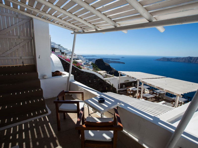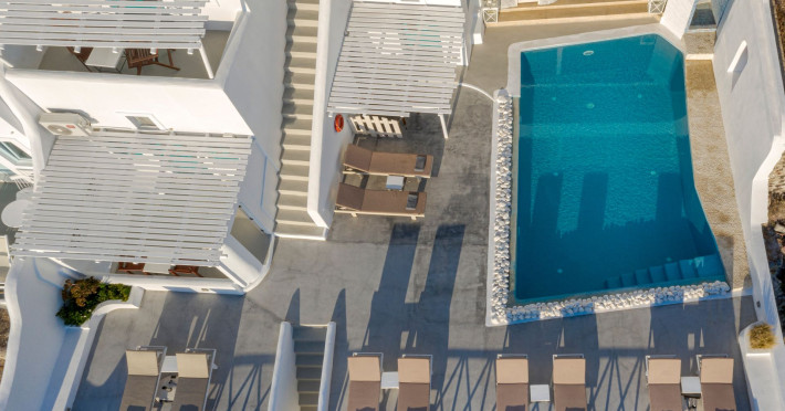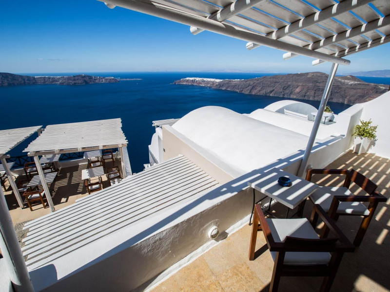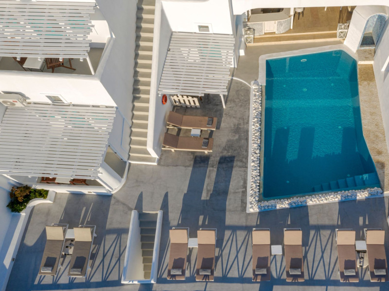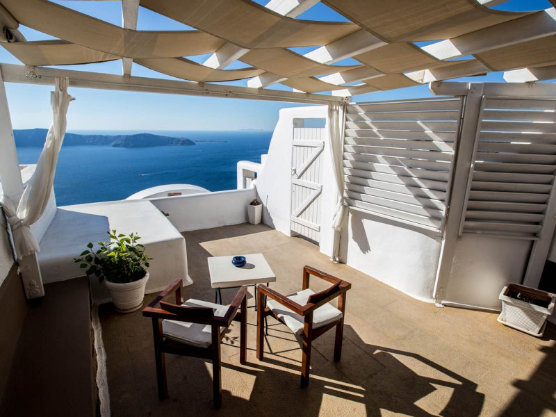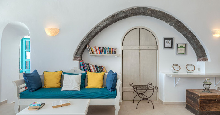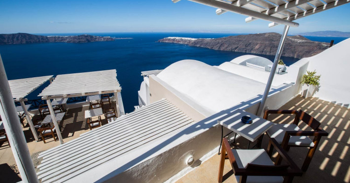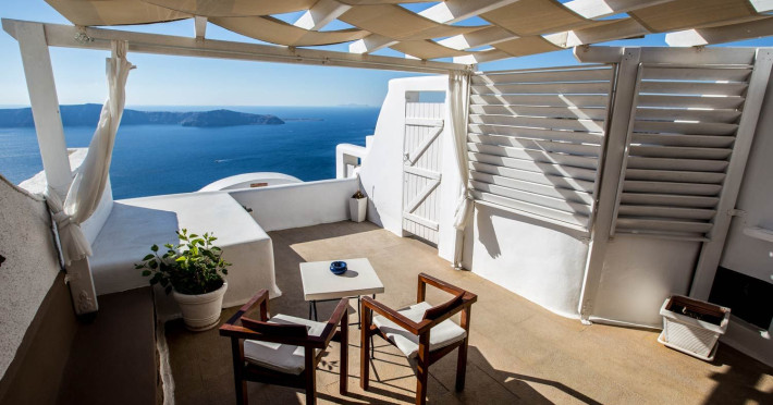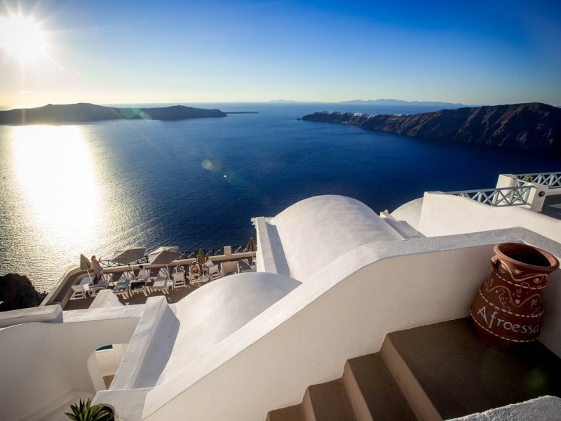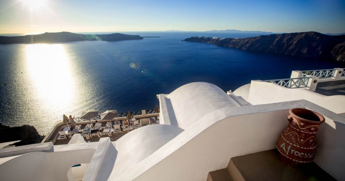 Afroessa hotel praises romance. Our guests experience the exceptional view from our "old canavas" rooms set atop of Santorini's hillside. The original site of the winery, first built in 1700 was renovated in 1998 on its existing foundation. Our ten studios, each with its own unique archway are built on five levels, with their own magical view of Caldera. Each studio is individually decorated giving its own district character, yet maintaining the traditional style. The beds are built into the foundations and the furnishing and decorations chosen so as to enhance the warm and romantic feelings created by the surroundings.The priceless moments which you will experience during the enchanting sunsets from your balconies and the relaxing pool bar, with chill - out music will forever remain in your memories, reminding you of the serene calm and magic of Afroessa Hotel Santorini.We welcome you in an idyllic environment ideal for adults who want to live unforgettable moments in the most erotic island.That is why our hotel accommodates only adults and offers luxurious accommodation conditions, thus contributing to the creation of the sweetest memories of your holidays to magical Santorini.