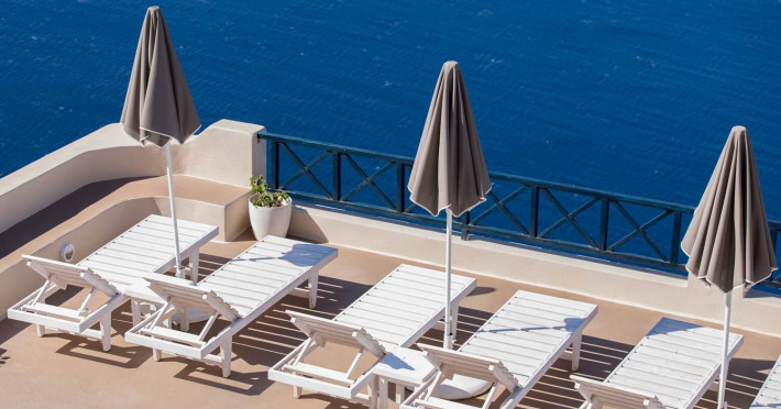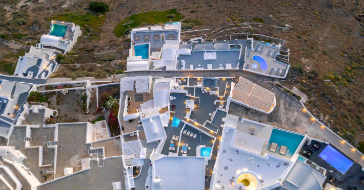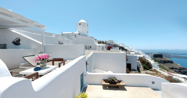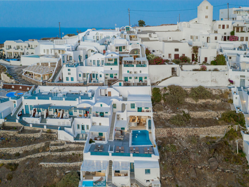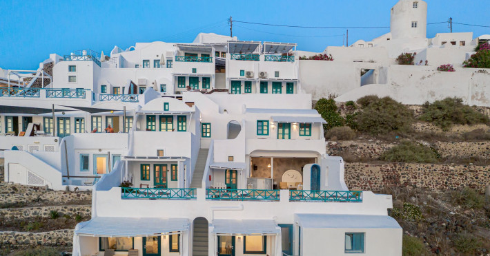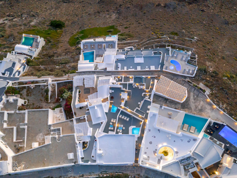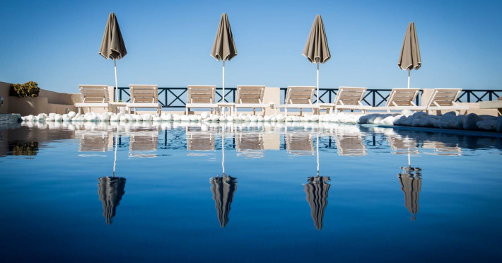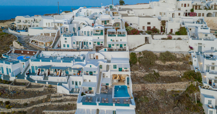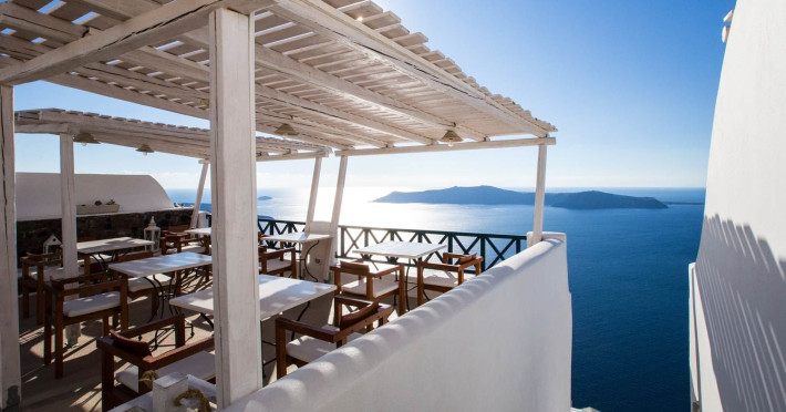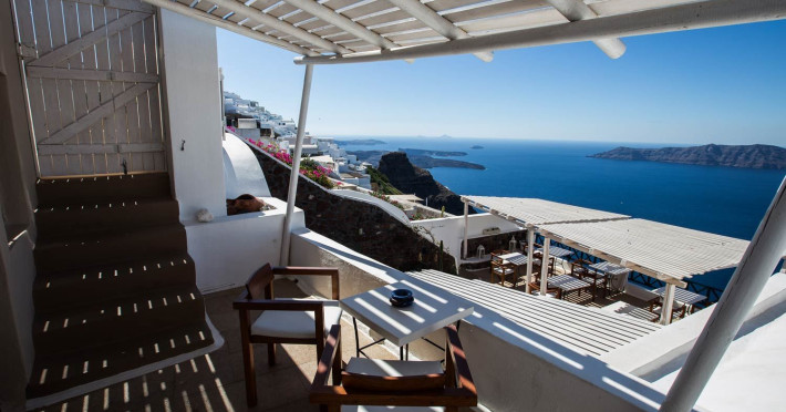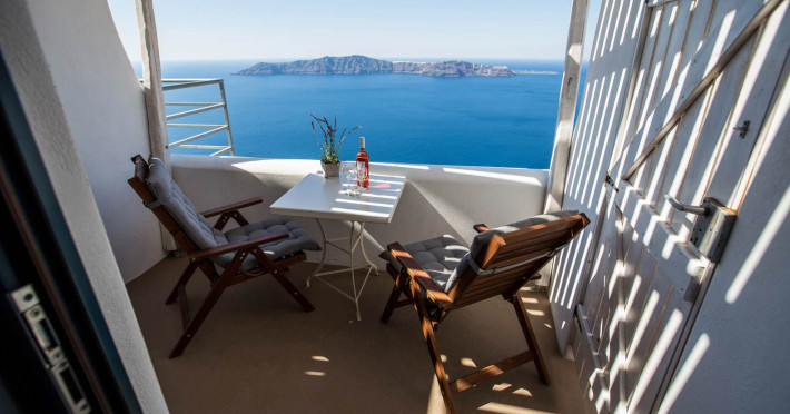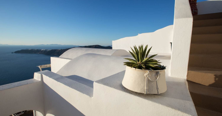 Afroessa hotel praises romance. Our guests experience the exceptional view from our "old canavas" rooms set atop of Santorini's hillside. The original site of the winery, first built in 1700 was renovated in 1998 on its existing foundation. Our ten studios, each with its own unique archway are built on five levels, with their own magical view of Caldera. Each studio is individually decorated giving its own district character, yet maintaining the traditional style. The beds are built into the foundations and the furnishing and decorations chosen so as to enhance the warm and romantic feelings created by the surroundings.The priceless moments which you will experience during the enchanting sunsets from your balconies and the relaxing pool bar, with chill - out music will forever remain in your memories, reminding you of the serene calm and magic of Afroessa Hotel Santorini.We welcome you in an idyllic environment ideal for adults who want to live unforgettable moments in the most erotic island.That is why our hotel accommodates only adults and offers luxurious accommodation conditions, thus contributing to the creation of the sweetest memories of your holidays to magical Santorini.