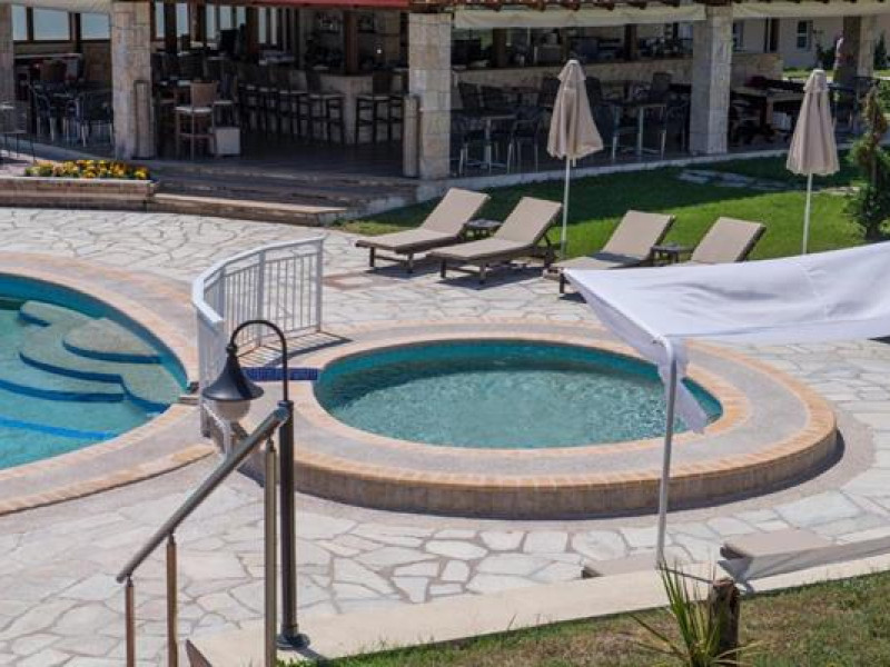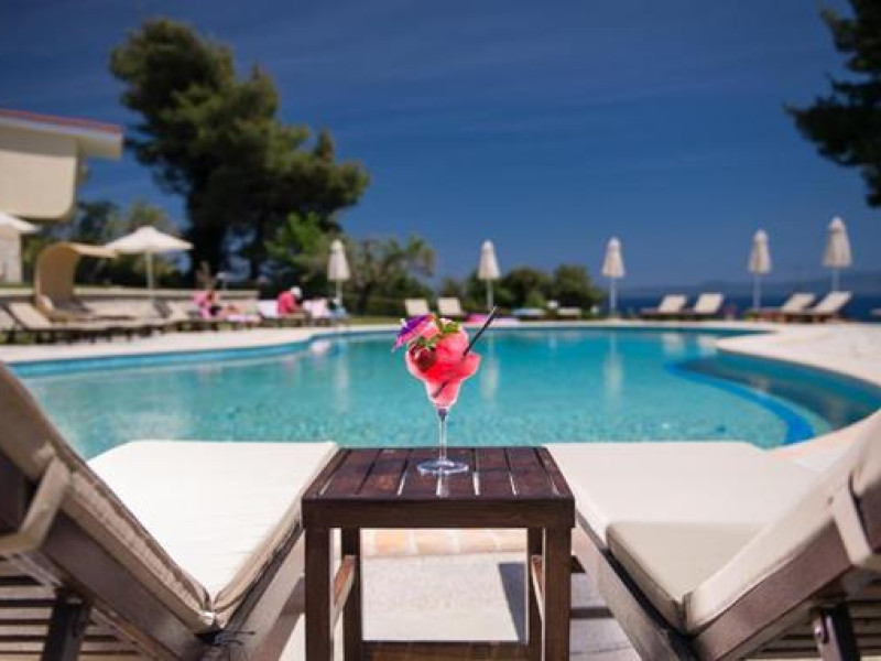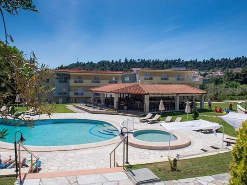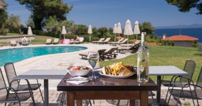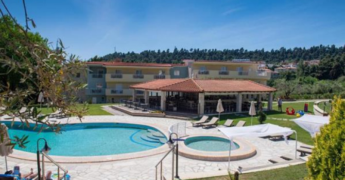 The Alkion Hotel is situated in Kriopigi, on Kassandra Peninsula of Halkidiki, in a very green and relaxing environment, 80 km from Thessaloniki. The resort is extremely busy during the summer season. The hotel is perfect for relaxation, clean and cosy.