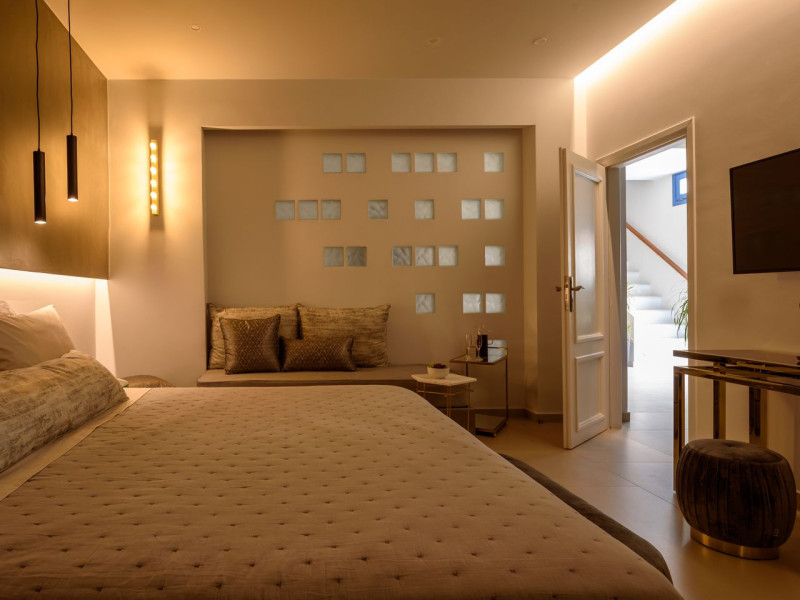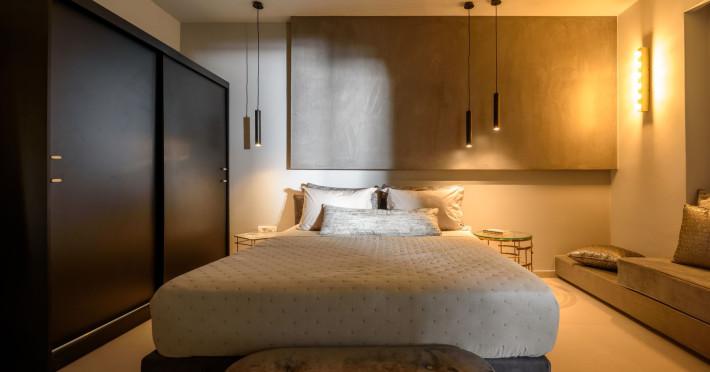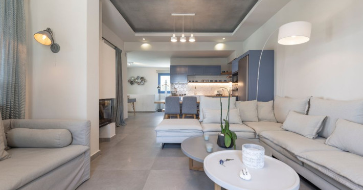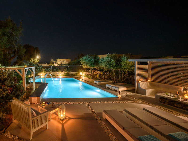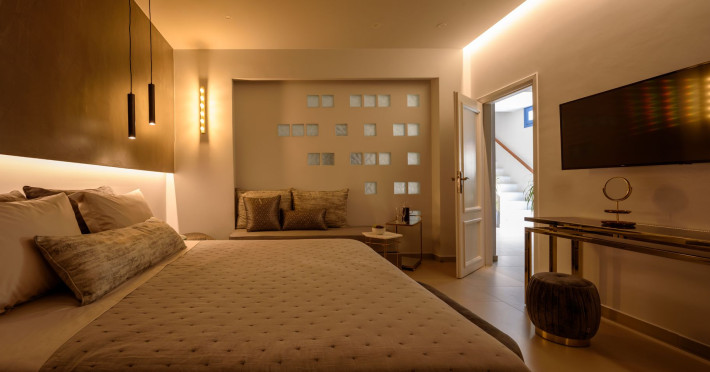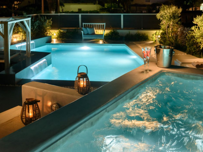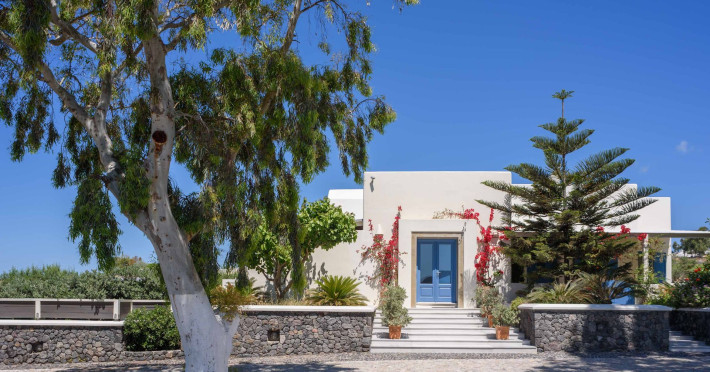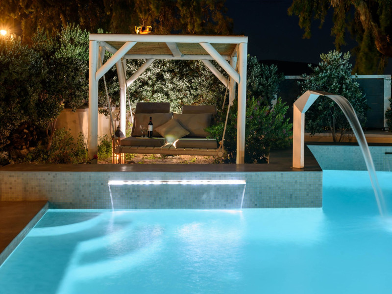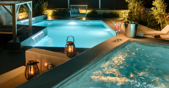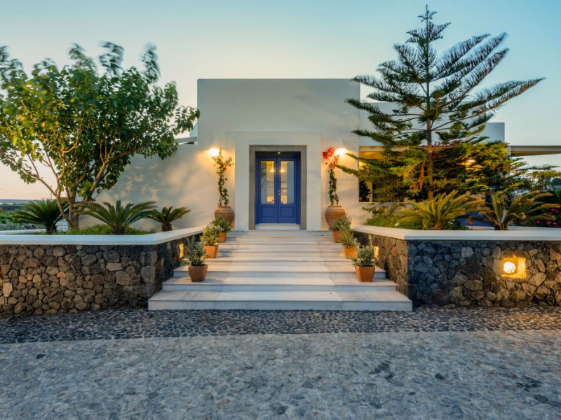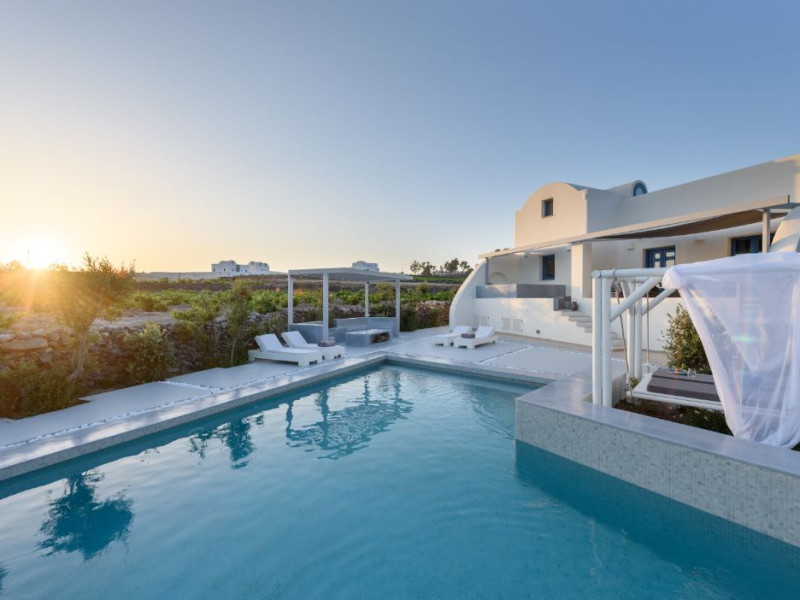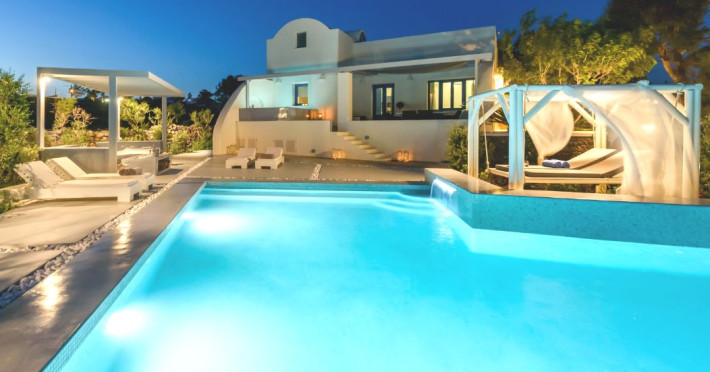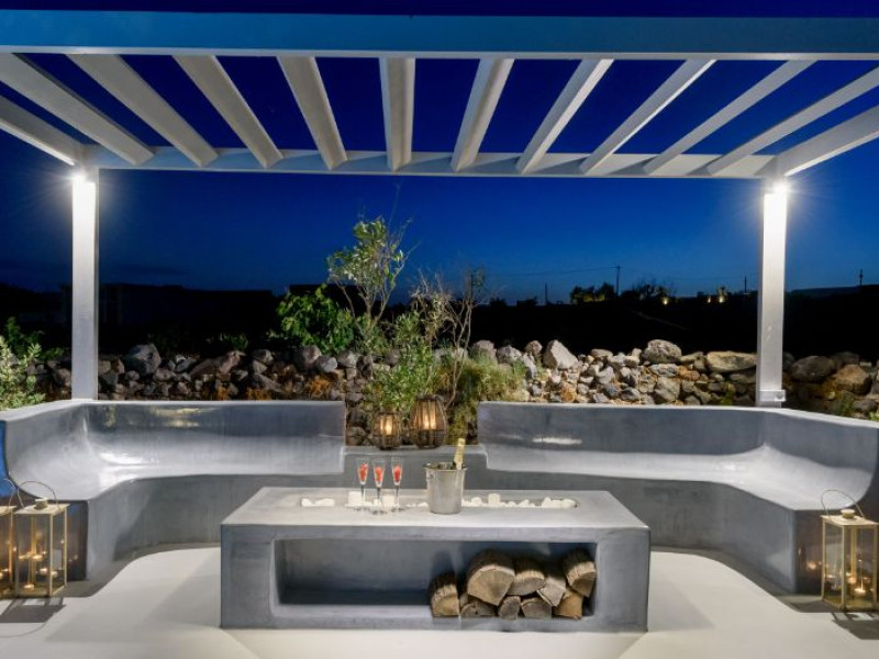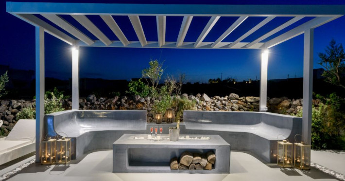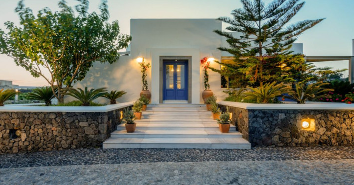 In a tranquil location on the way to Megalochori, a man with 15 years’ experience in the hospitality industry decided to transform a large family vineyard into an enchanting private oasis. Being in perfect harmony with its surroundings, the elegant “Ambeli Villa” is a stunning honeymoon villa and a comfortable residence built of black and white stone, which has all the modern amenities one could ask for. This luxury accommodation features an amazing outdoor pool with Jacuzzi as well as breathtaking views from the balconies, which can turn your Santorini vacations into a memorable experience. It’s the ideal combination of the privacy of your own luxury villa, with the comforts of a hotel.