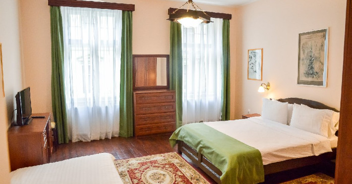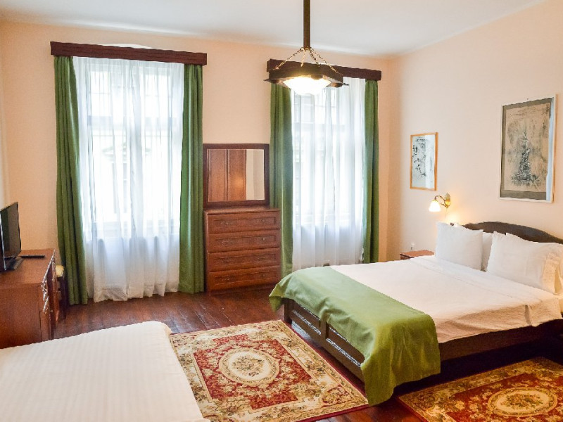 Spatiile de cazare sunt amenajate in stil clasic, cu elemente arhitecturale specifice cladirilor istorice, imbinate cu facilitati moderne pentru confortul oaspetilor. Toate apartamentele si camerele sunt dotate cu WiFi gratuit si TV cu ecran plat. Fiecare unitate dispune de baie proprie, prevazuta cu uscator de par si articole de toaleta gratuite.