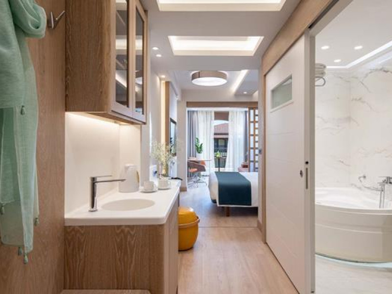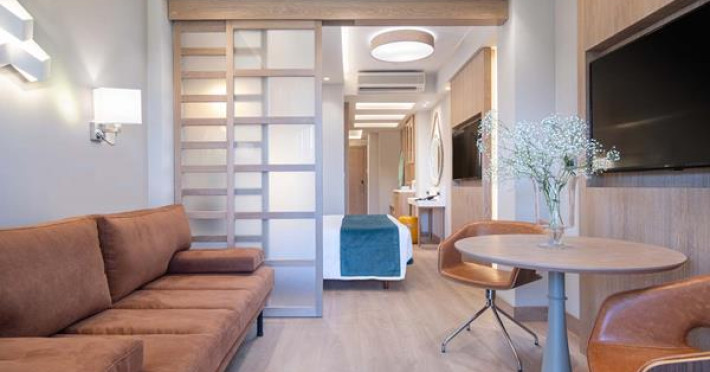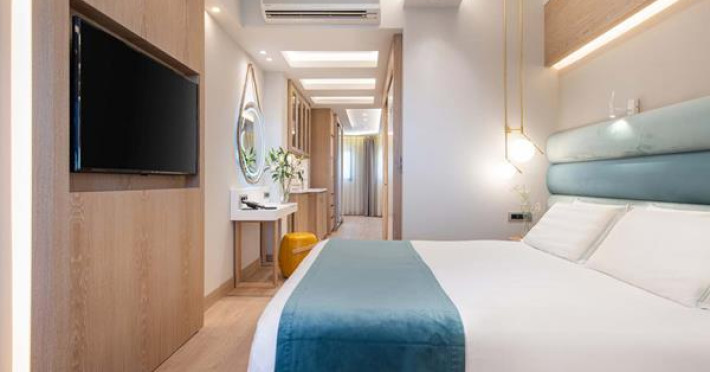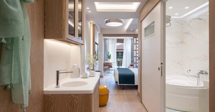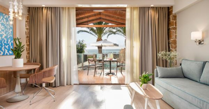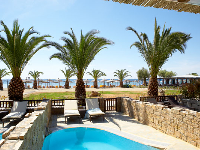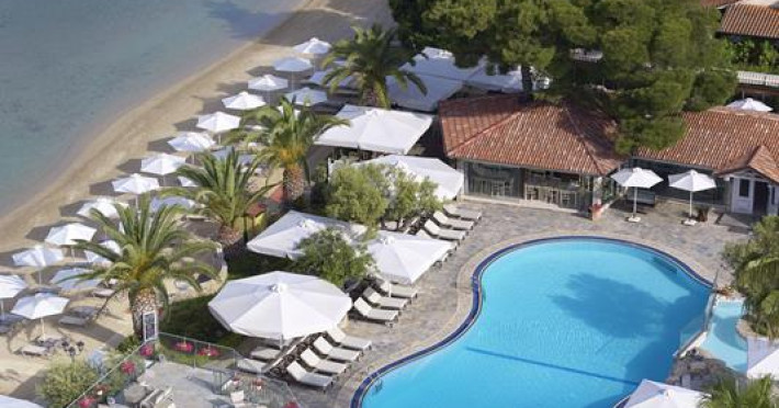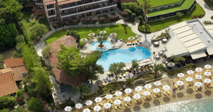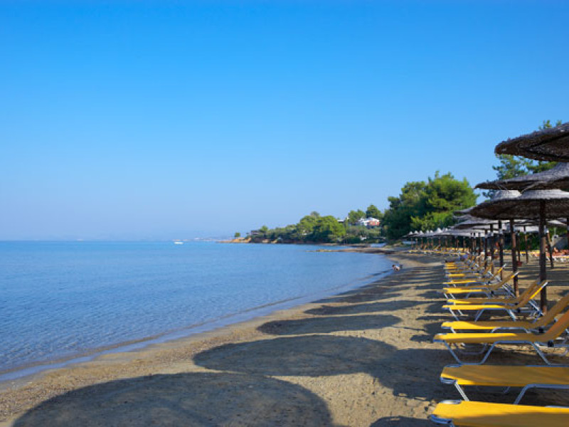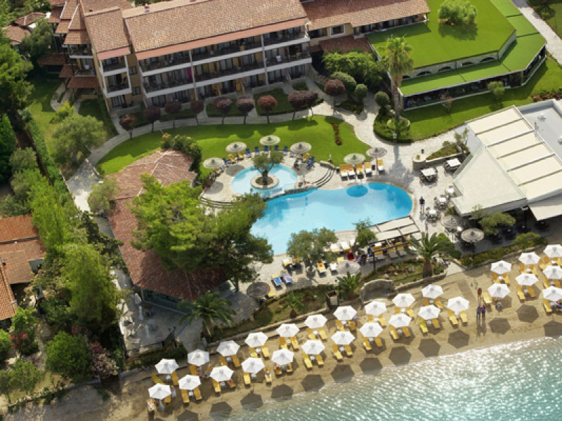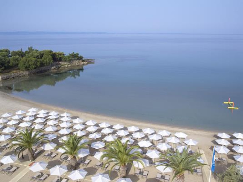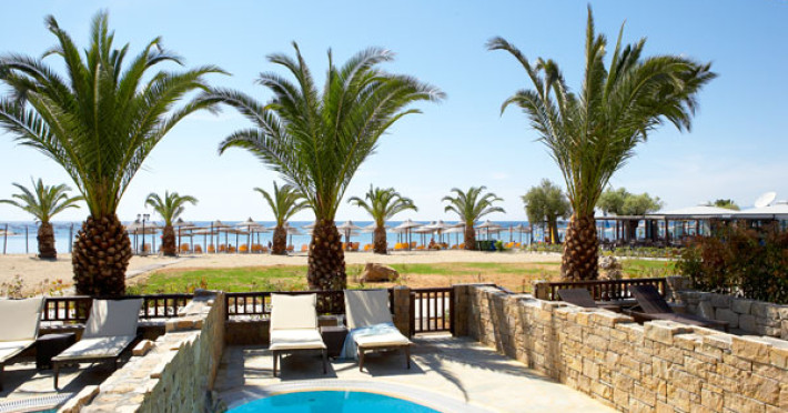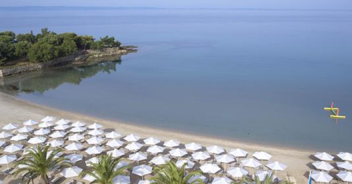 The unique Anthemus Beach Hotel and Spa, located on a site of 38.000m², lies in a picturesque bay on Elia Coast of Sithonia, right next to a sandy beach awarded with the Blue Flag of the European Community. It is situated 95km from “Macedonia” Airport of Thessaloniki, 12 km from the village of Nikiti and 7 km from the scenic village of N. Marmaras.