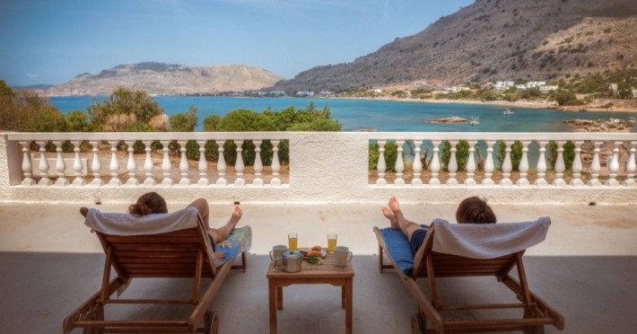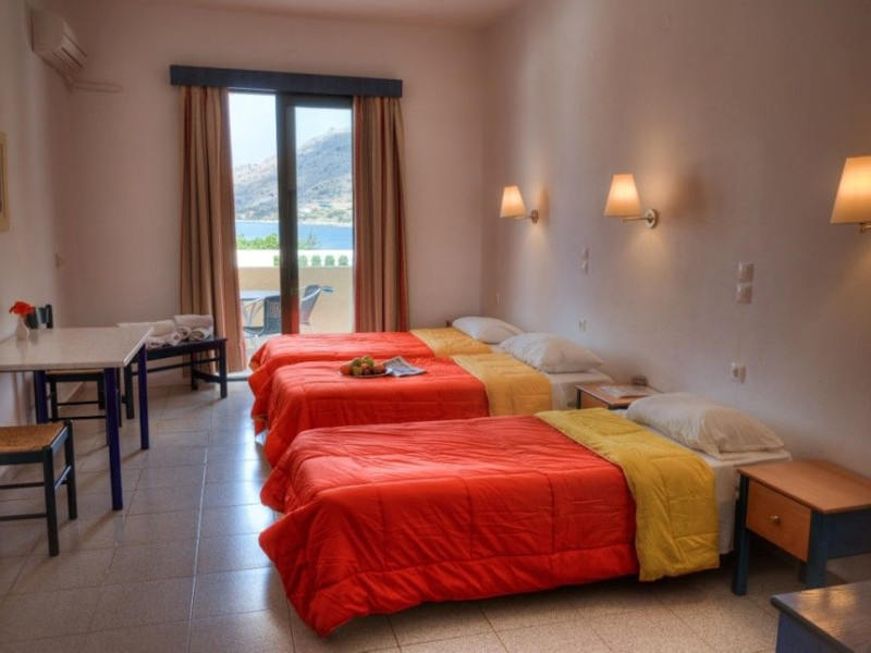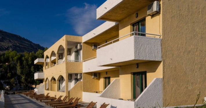 Anthi Maria Apartments, situated on the sandy beach of Pefkos in Rhodes Island, offers accommodations with furnished balconies overlooking the bay. Apartments feature well-equipped kitchenettes with fridge. Each self-catered apartment is spacious and bright with a dining table. Guests at Anthi Maria Apartments can enjoy also the barbecue facilities.Among vineyards, pine, olive and fig trees, Pefkos is an ideal location for a relaxing break. The village is spread along the main coastal road offering a good choice of taverns, bars and shops. Bus, taxi, pharmacy and doctor services are in close proximity. Pefkos beach is equipped with free lounge chairs, umbrellas and outdoor showers.Free parking is available on site. Rhodes Airport is 23 miles away.