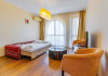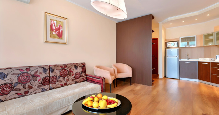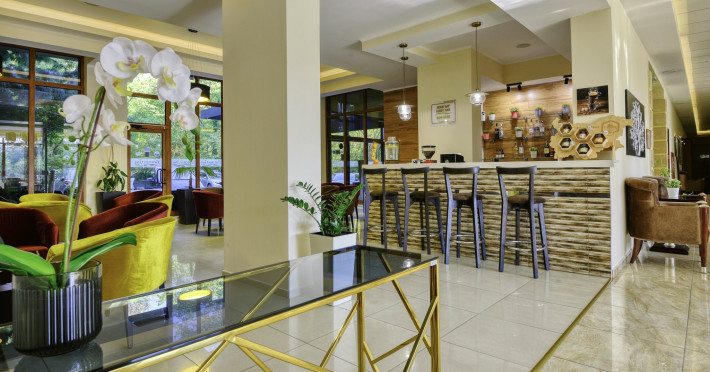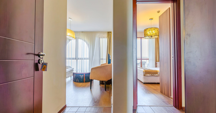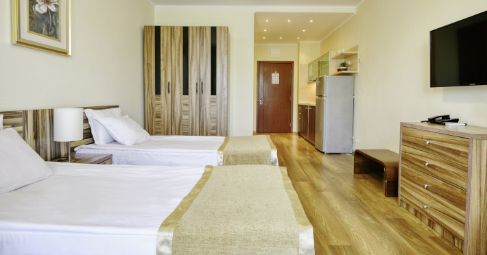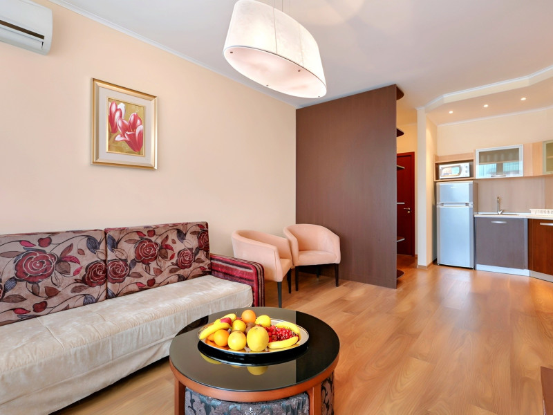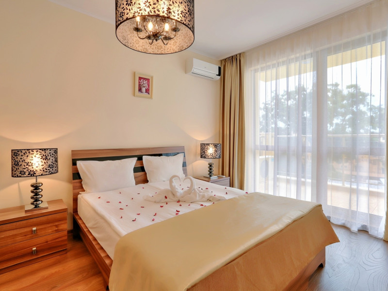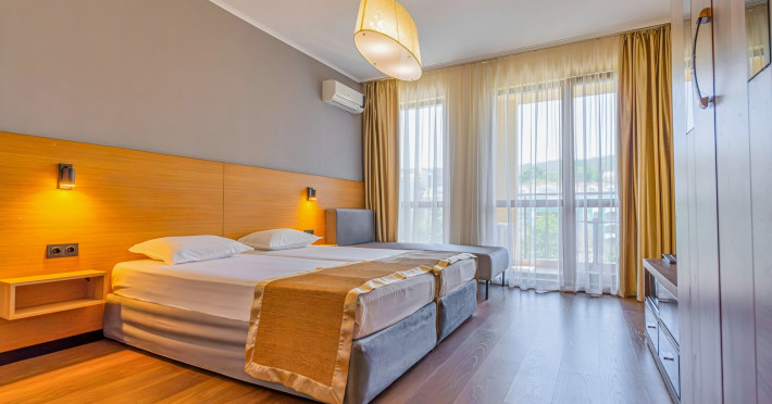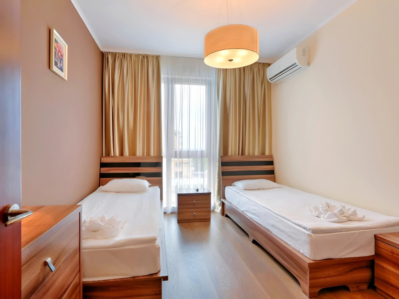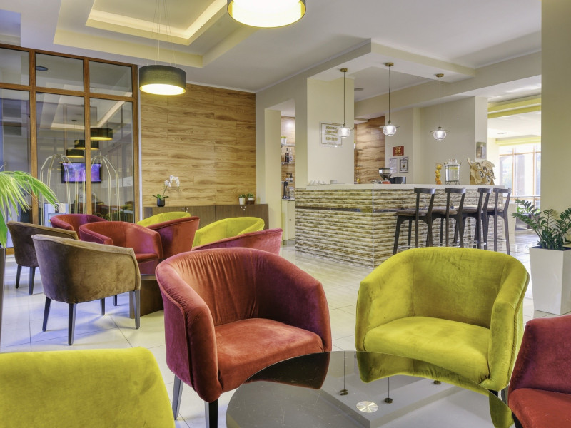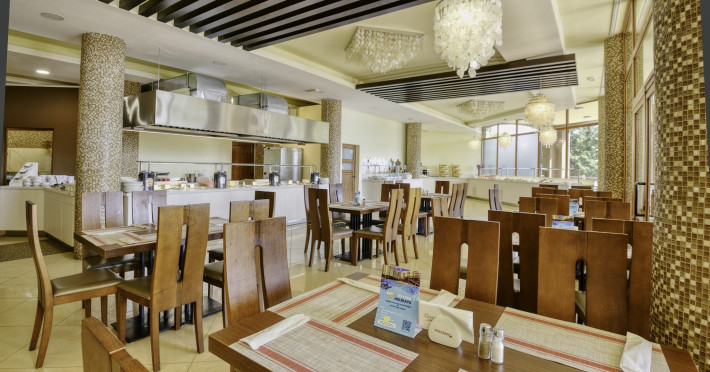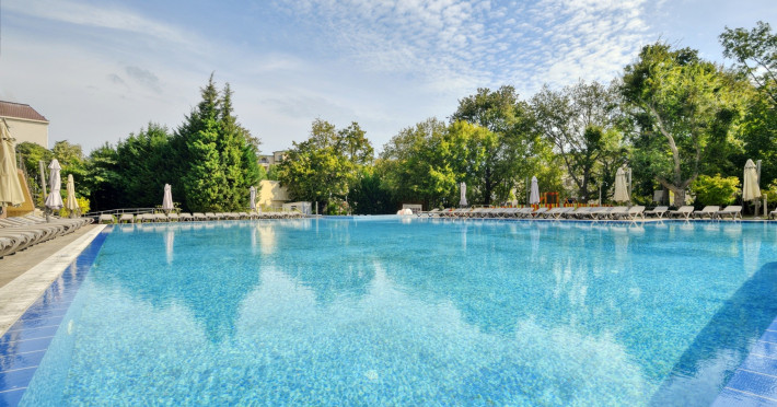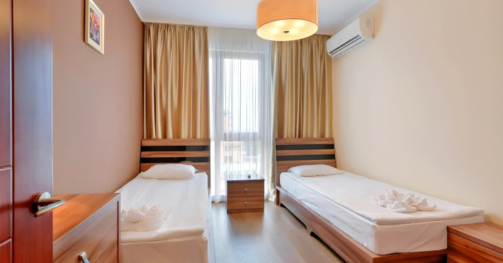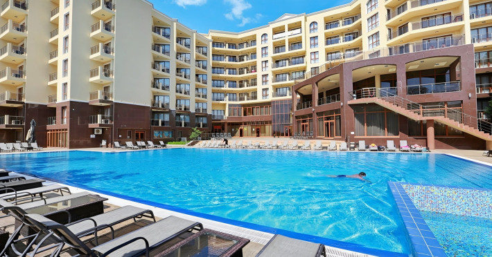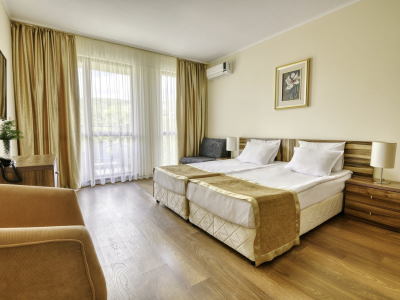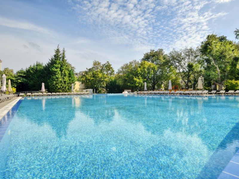 Hotelul Golden Line se gaseste la marginea statiunii foarte populare Zlaté Pisky si ofera conditii pentru o vacanta netulburata clientilor de toate varstele. Va puteti caza in apartamente si studiouri mobilate confortabil, dotate cu o chicineta. Se poate alege dintre cazare cu mic dejun pentru cei care prefera self-catering, sau programul All Inclusive. Datorita locatiei sale la marginea statiunii, hotelul este o alegere potrivita pentru o vacanta linistita, netulburata, in timp ce centrul statiunii cu optiunile de divertisment este la cativa pasi. Pentru copii exista o piscina pentru copii cu tobogan, un loc de joaca pentru copii si programe de animatie in timpul zilei.