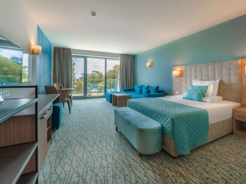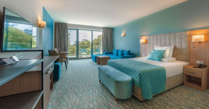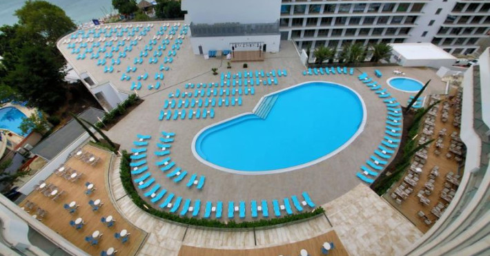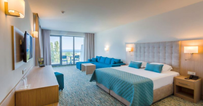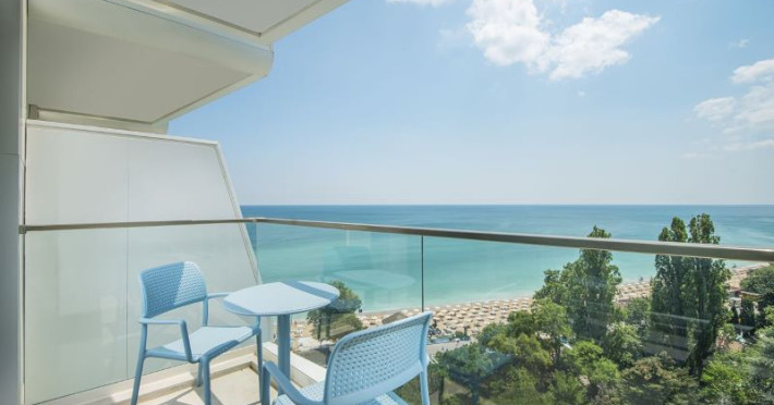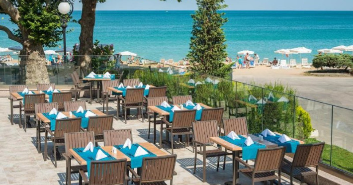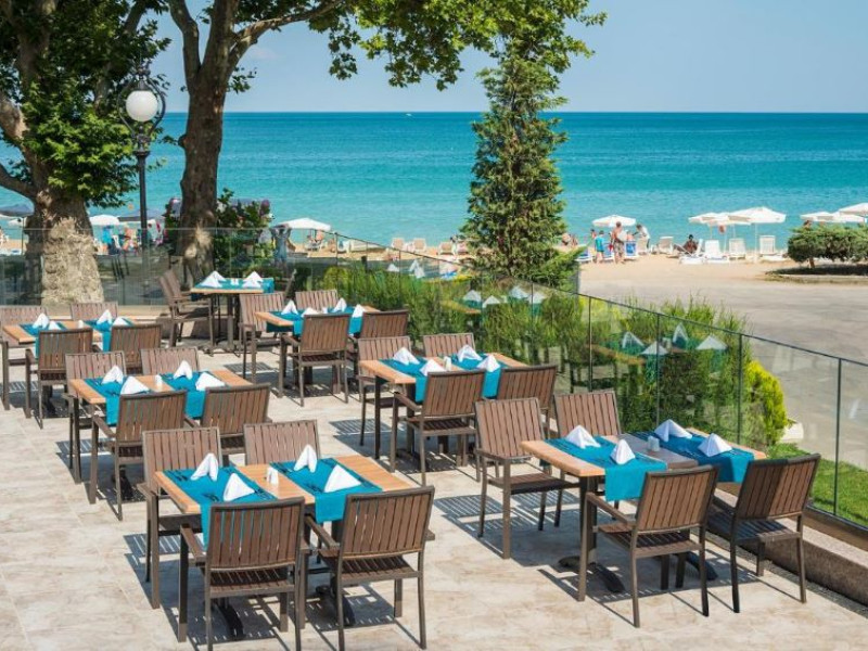 Hotelul Astoria se află chiar în fața plajei, având doar promenada maritimă ca barieră între el și nisipul fin.