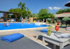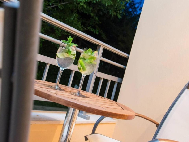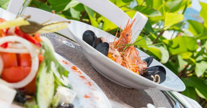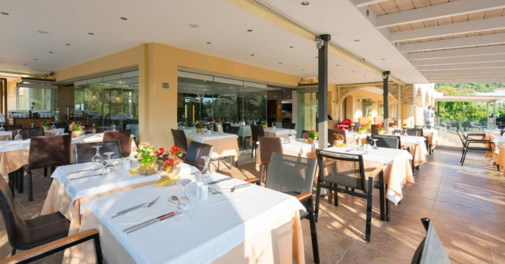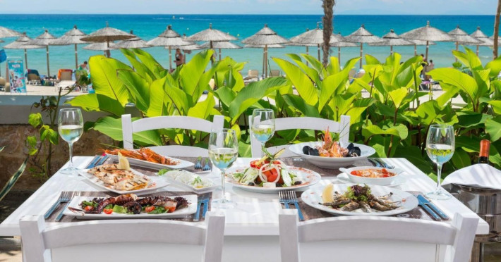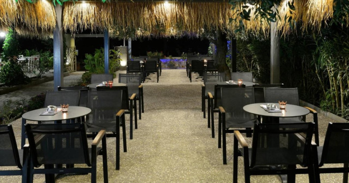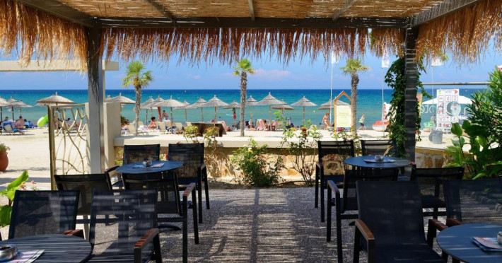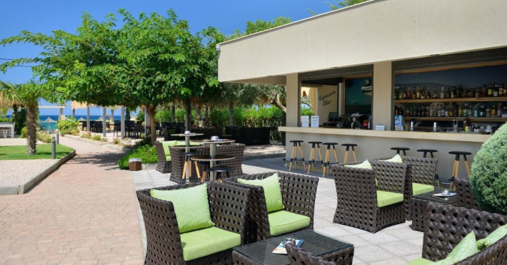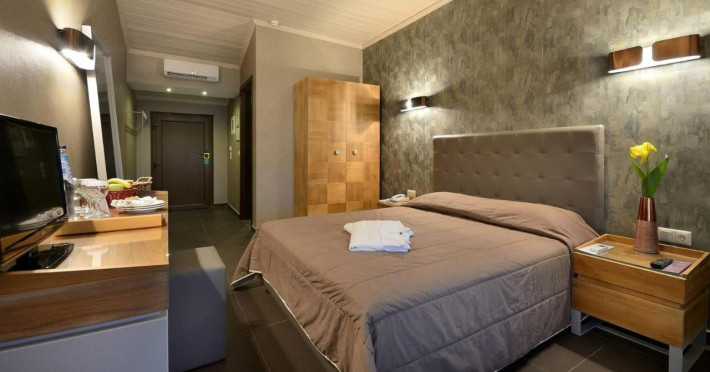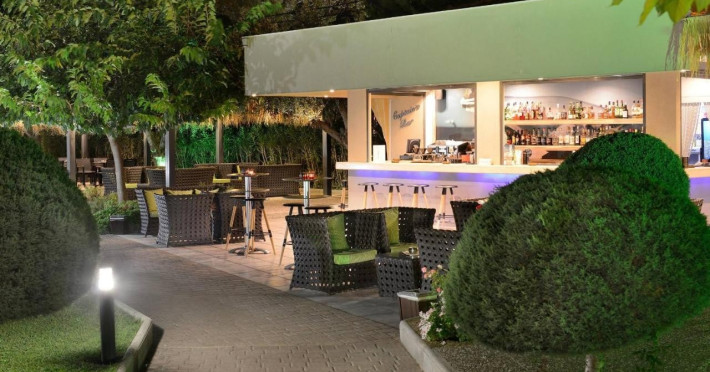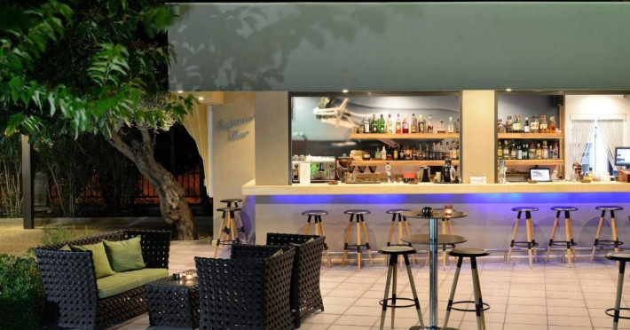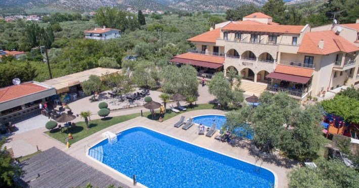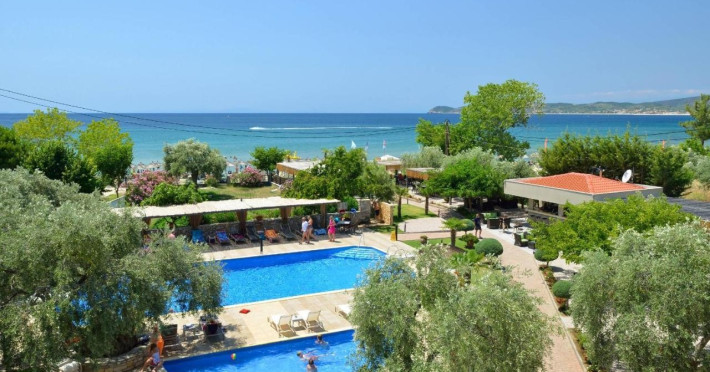 Hotelul modern este situat intr-o locatie linistita, la aproximativ 15 minute de mers pe jos de orasul Potos, unde puteti alege dintre restaurante, taverne, cafenele, baruri si magazine cu o gama larga de produse. Exista doua taverne si o cafenea la hotel. Plaja larga si nisipoasa se afla chiar in fata hotelului si este potrivita si pentru copii, datorita intrarii sale treptate in mare.