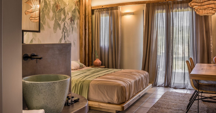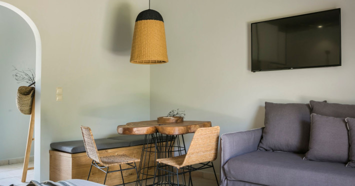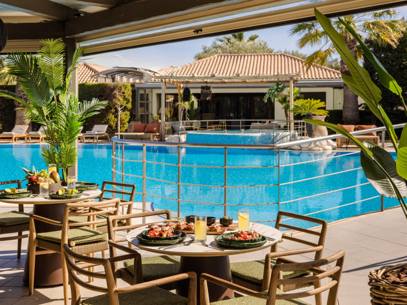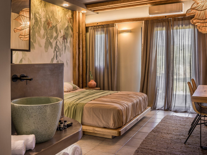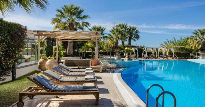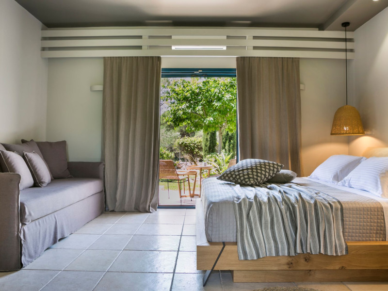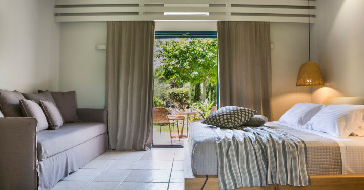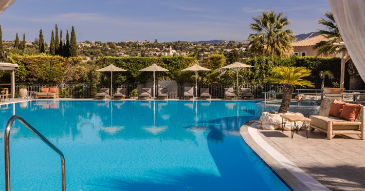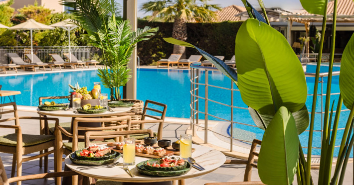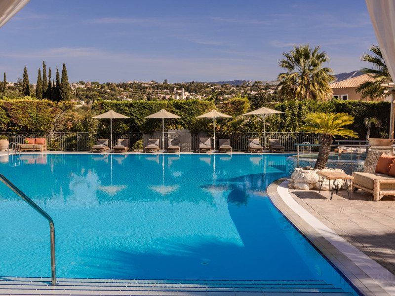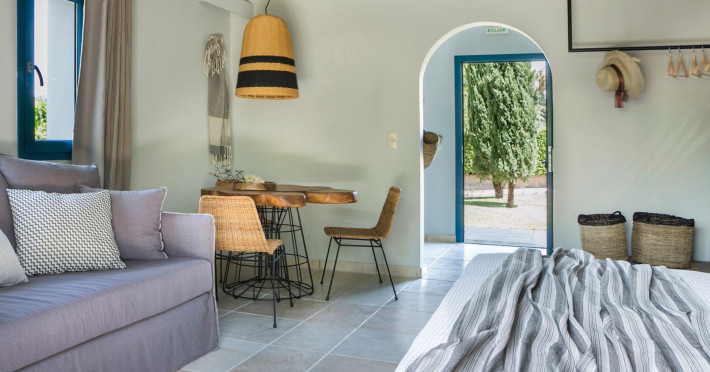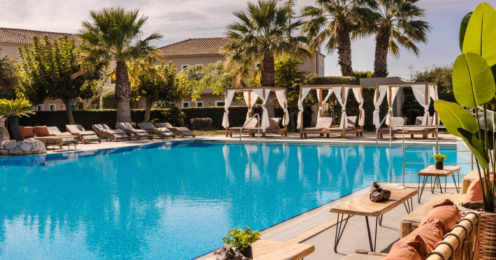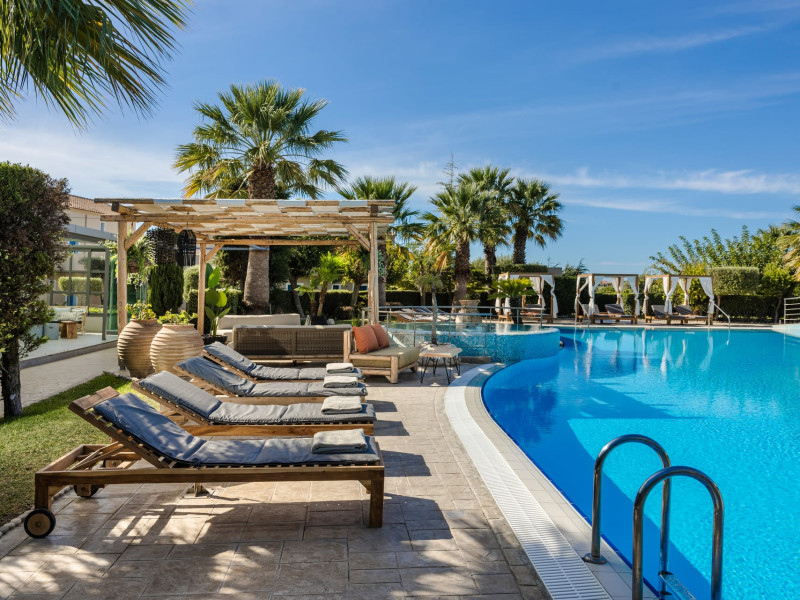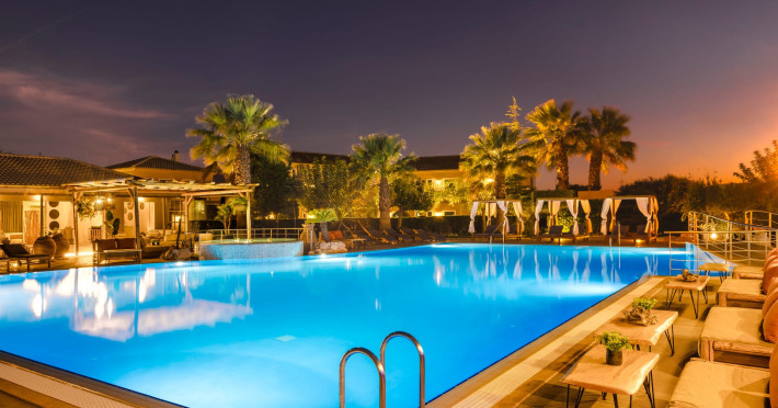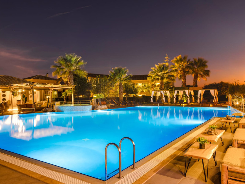 Situated within a land full of olive groves and cypress trees, Avithos Resort offers a seductive proposal for relaxing and refreshing vacation in Kefalonia Island near Argostoli, Kefalonia’s capital. The carefully built and decorated rooms and apartments of Avithos Resort provide for its guests all modern comforts and services, while they cater for every taste and need. The resort’s architecture, simple & light colored, blends magically within its natural environment and beautiful gardens. The Olympic size swimming pool set amongst the seventeen accommodation buildings provokes its guest to lounge around it and enjoy the refreshing cocktails and tasty snacks made in the pool bar.