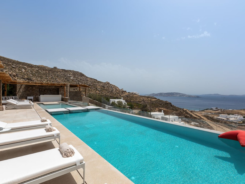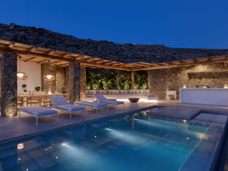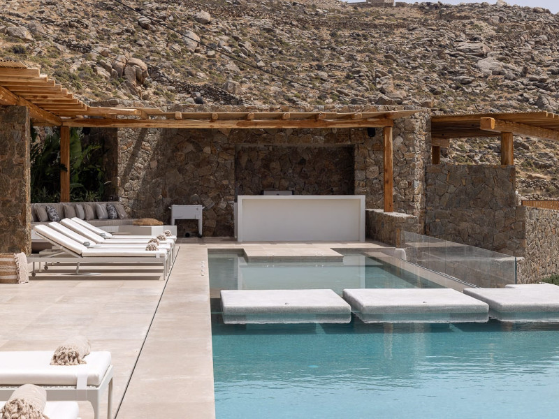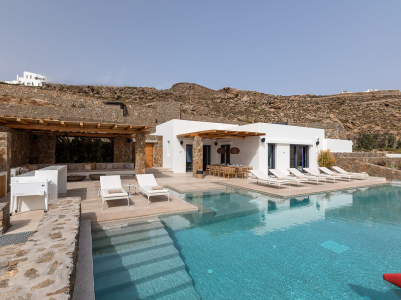 Both villas are ideally situated in Houlakia, offering serene privacy while being just a short drive from Mykonos Town. Guests can explore world-renowned beaches, vibrant nightlife, and cultural landmarks while retreating to the peace and luxury of their villa.