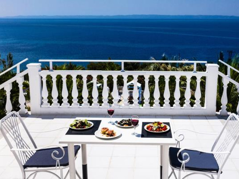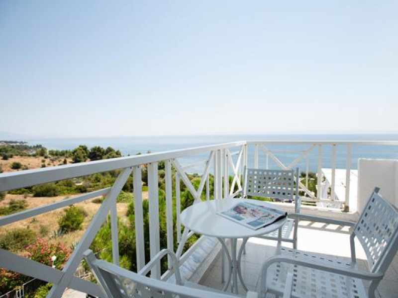 Bianco Olympico Beach Resort 4* Resort is located at the blessed Sithonia peninsula of Chalkidiki region, in Northern Greece. Just 2.5km from the little scenic village of Vatopedi above crystal emerald waters of an endless sandy beach, offers excellent view of the sparkling Aegean Sea and unforgettable sunsets. Surrounded by olive groves Bianco Olympico Beach Resort, is the perfect hideaway to combine modern accommodation and finest Mediterranean and Greek cuisine.