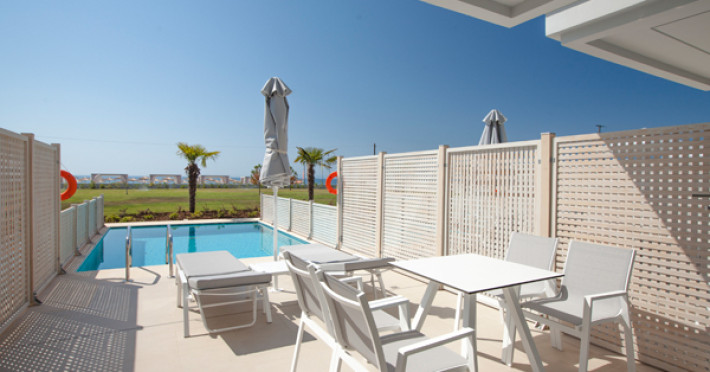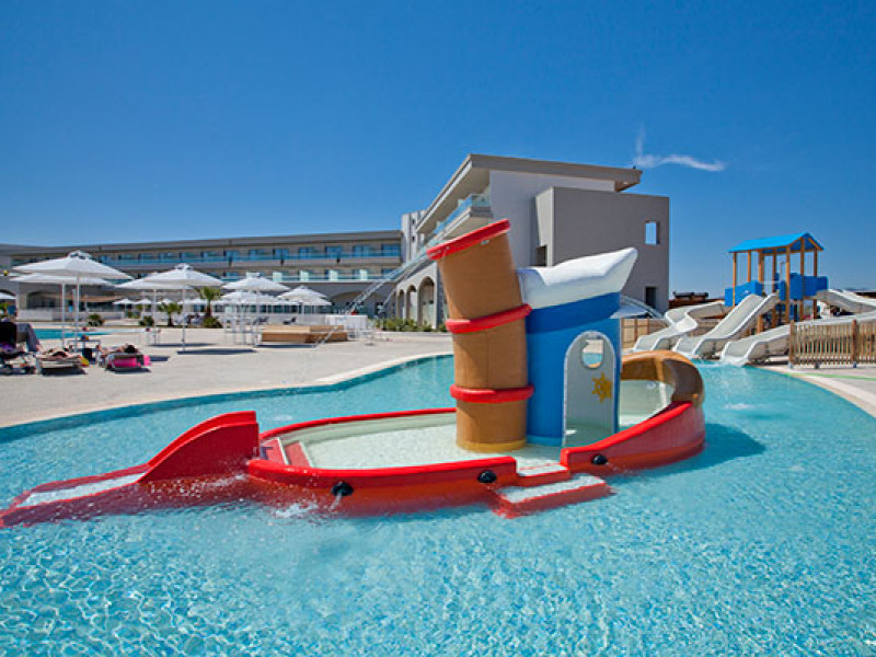 A newly built hotel (2014/15), situated in Kalives, between the first and the second leg of the Halkidiki Peninsula, 50 m from a sandy beach. The hotel offers luxurious rooms and suites, several pools and Spa with indoor pool, 3 themed restaurants and 5 bars, children’s facilities and sports, prime beach front location.