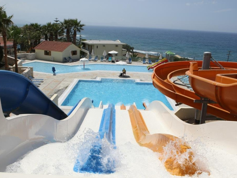 Localizare: Hotelul se afla in statiunea Skaleta, la 70 km de aeroportul international 'Nikos Kazantzakis' din Heraklion si la la 11 km est de Rethymno. Plaja cu nisip o regasim la 150 m de hotel, premiata Blue Flag iar accesul se face printr-un pasaj Cai lift. Dotari camere: Cele 58 de camera ale hotelului au balcon sau terasa si sunt dotate cu aer conditionat , telefon in camera si in baie, TV cu ecran plat, mini-frigider / mini bar, seif, set de ceai sau cafea, halate de baie si papuci, uscator de par. Facilitati: Hotelul se mandreste cu varietatea serviciilor oferite oaspetii sai printer care enumeram: restaurante, baruri, piscina, access internet, room service, club pentru copii, sala de fitness si gimnastica, programe de divertisment, un water park cu 7 tobogane si 2 piscine noi, piscina cu apa dulce pentru adulti (130 metri patrati), tobogane (lungime 62 m), caderi libere: kamikaze (21 metri), 3 randuri de tobogane cu apa (22 metri), piscina pentru copii cu apa dulce (178 metri patrati), 2 turnuri: 2 tobogane pentru copii Cai o ciuperca. Web: https://www.bomohotels.com/hotel/rethimno-mare-royal
