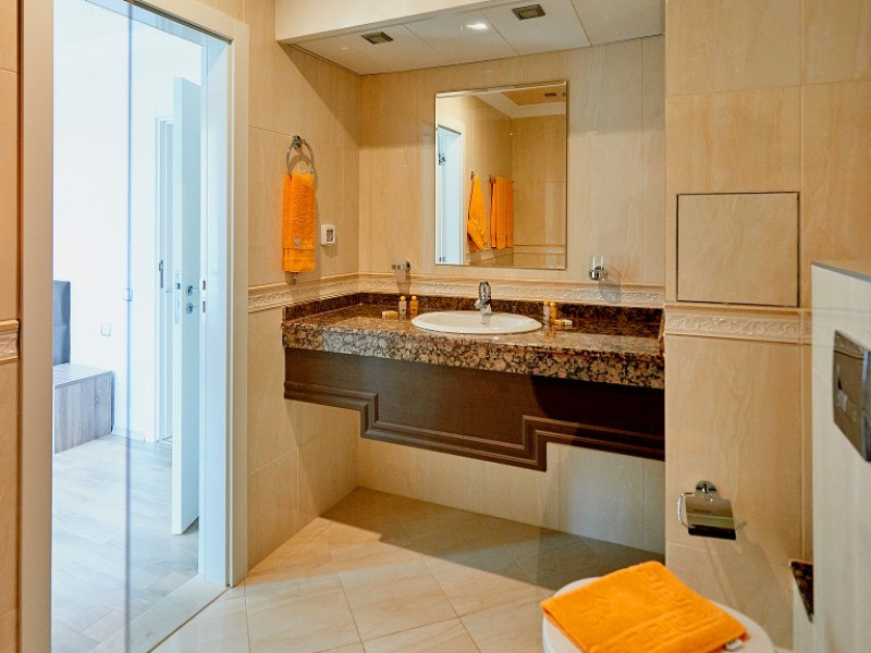 CAPACITATE: - cladire cu 5 etaje - 4 lifturi - 13 suite junior (max. 2+1 persoane, 40 m2) - 4 studiouri (max. 2 persoane, 40m2) - 16 apartamente cu un dormitor (max. 2+2 persoane, 73m2) - 11 apartamente cu cate doua dormitoare (max. 4+2 persoane, 90-130m2).