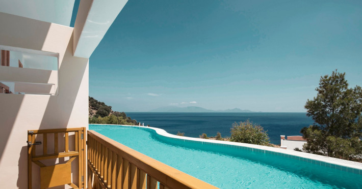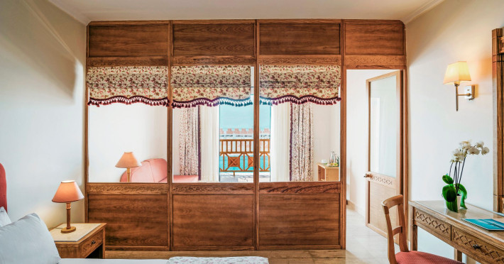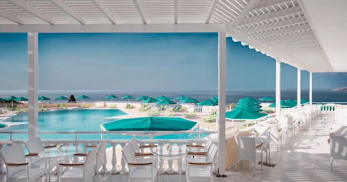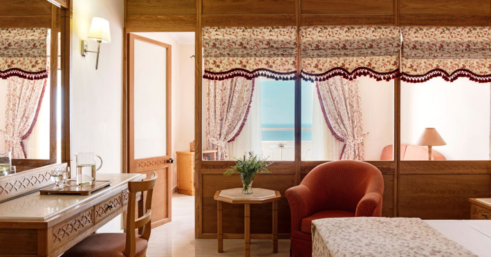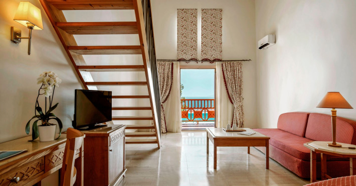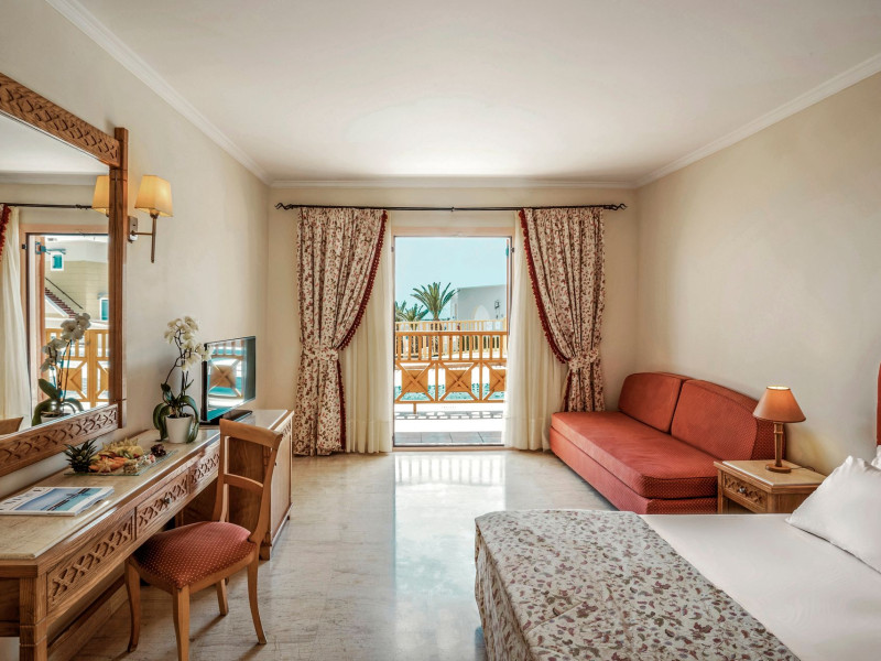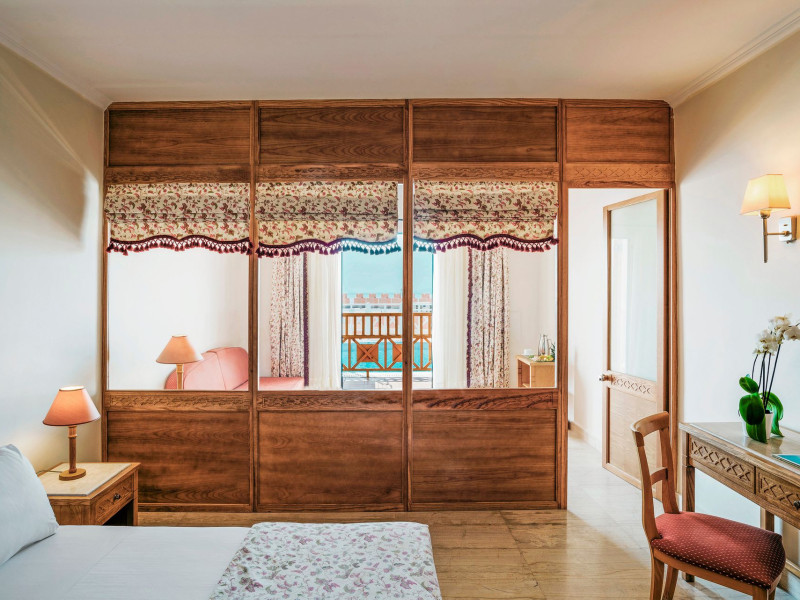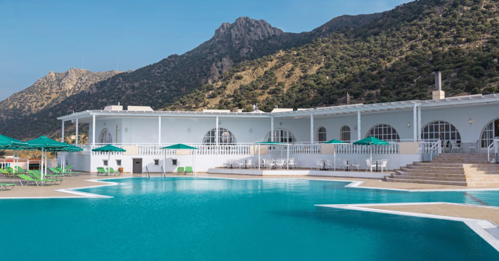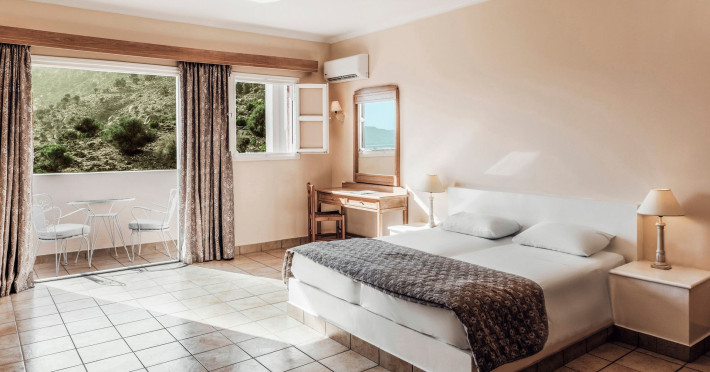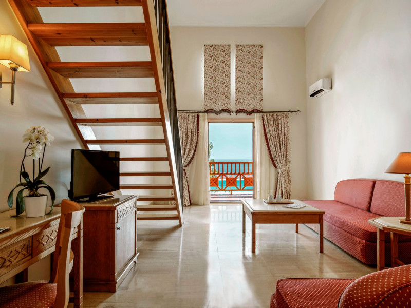The hotel offers 219 spacious standard and superior rooms with sharing pools, a Mediterranean style décor and an impressive view to the Aegean Sea. Among the available facilities are seawater swimming pools and water slides, a tennis court, beach volley, beach soccer and numerous sports and other recreational activities.