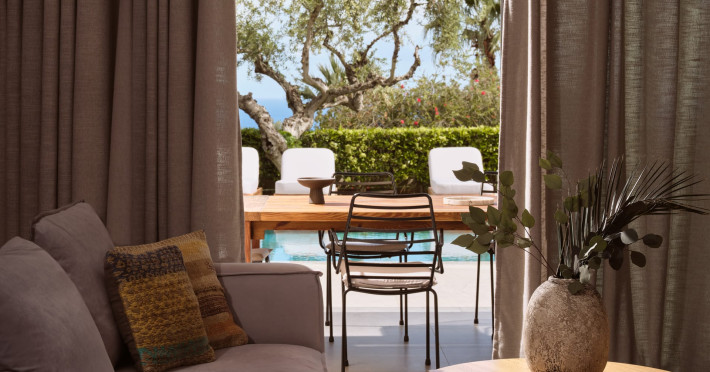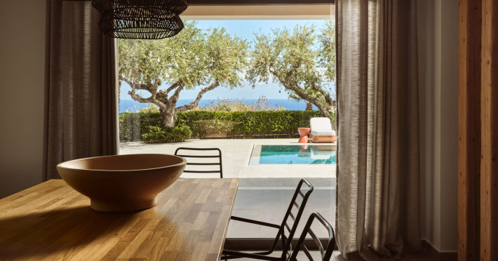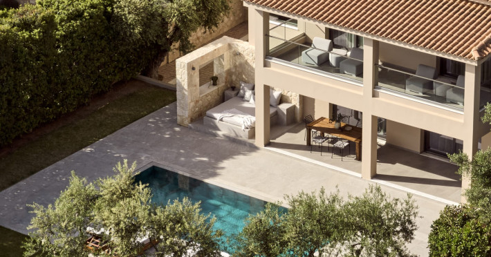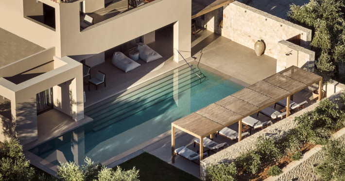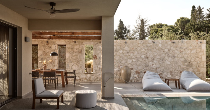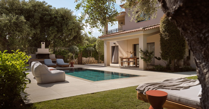 Located in Greece in the island of Zakynthos just 2km from Zante town, the private Cielo Villas complex overlooks the nearby dazzling sea as well as the graceful plains of the country side. Combining contemporary design with comfort, the villas are considered a masterpiece of architecture. These three elegant villas feature private swimming pools, indoor parking and an outdoor barbeque and dining table where guests can enjoy a delicious meal under the stars. The well kept gardens are ideal for children to play safely.Spend your day soaking up some sun by the pool or admiring the amazing view of the endless blue of the Ionian Sea laid out right in front of you. If you are looking for a rejuvenating vacation, the Cielo Villas are here to offer you an escape from everyday routine all year round.