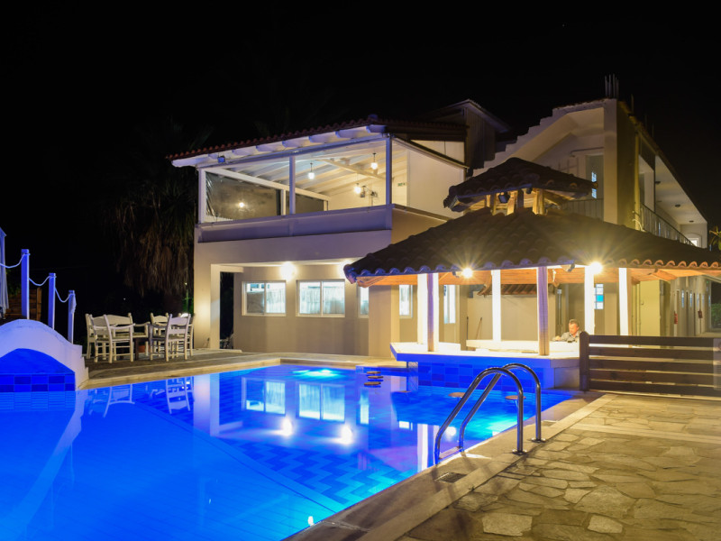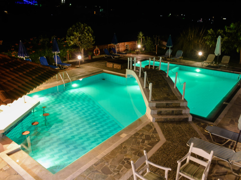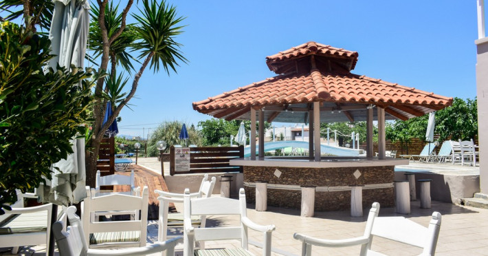 The hotel features a swimming pool with sun umbrellas and sun loungers available for free. The pool bar offers refreshment drinks and snacks. There is a reception area, parking area, a sun terrace and a garden. all the studios come with air condition, free WiFi and a balcony. All the studios have a kitchenette, a en suite bathroom and a safe. in a walking distance the guests can find many super markets, cafes and restaurants.