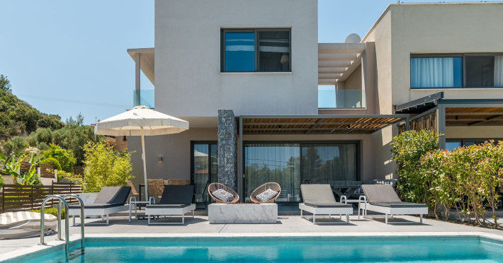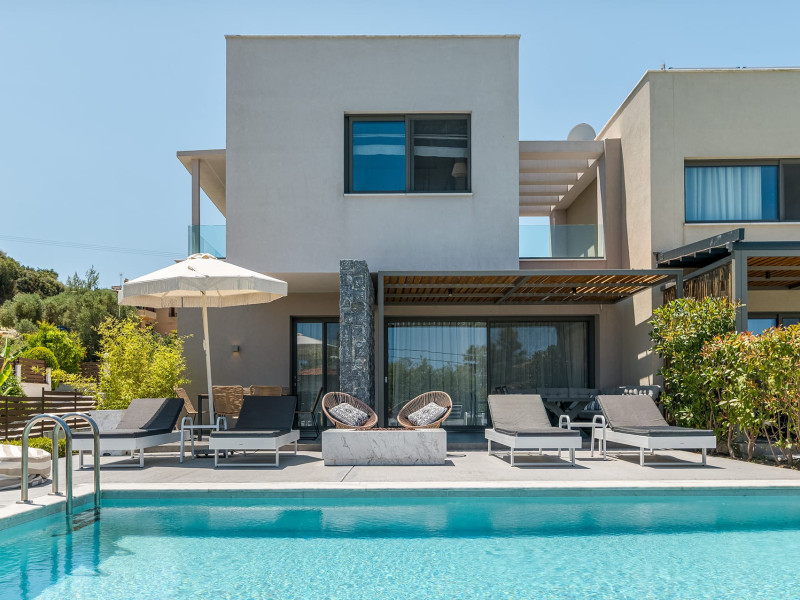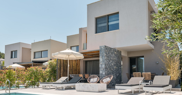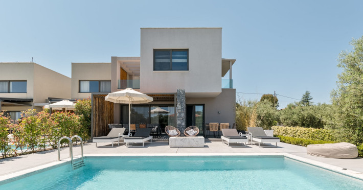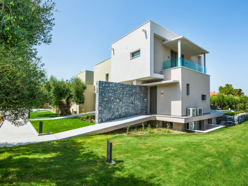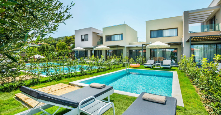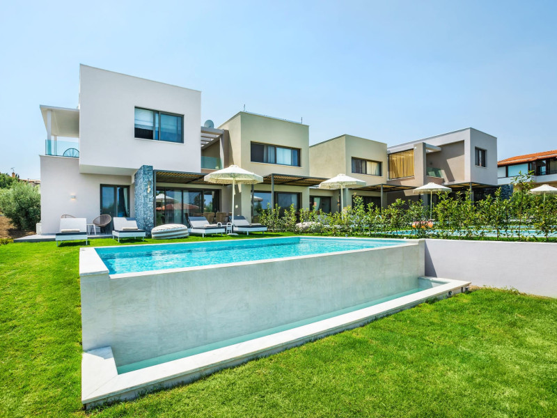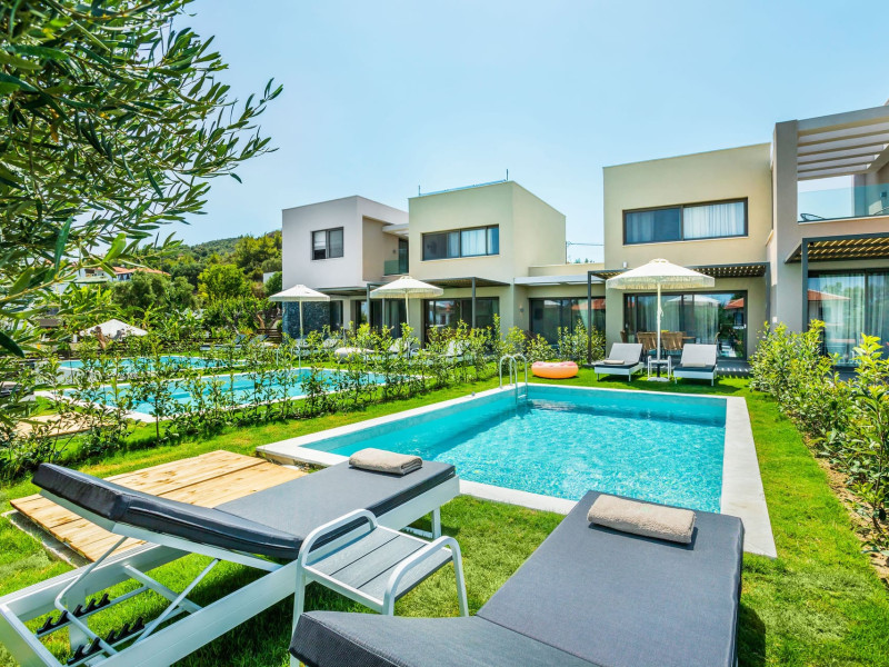 Dionisos Luxury Villas is a newly built complex of four luxury villas surrounded by olive trees aged more than a hundred years old. It is located in Pefkochori, Halkidiki, Greece.