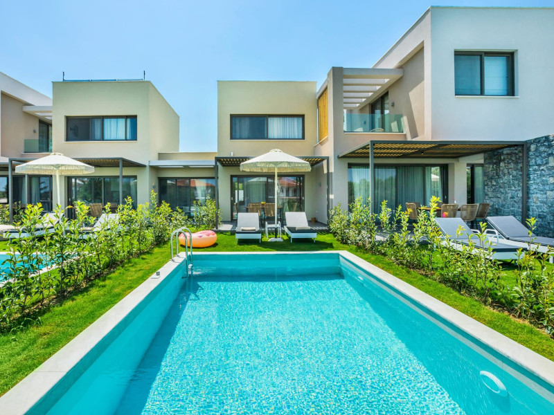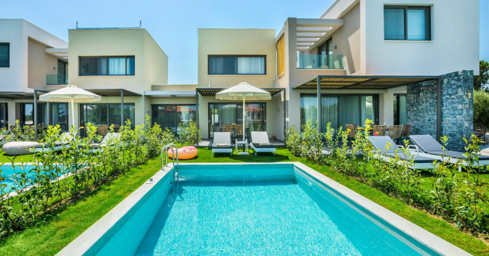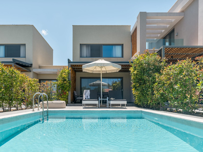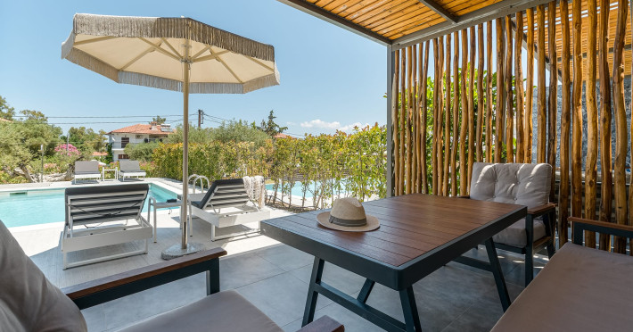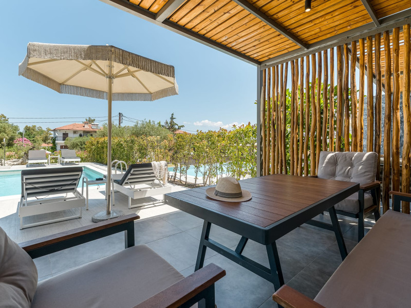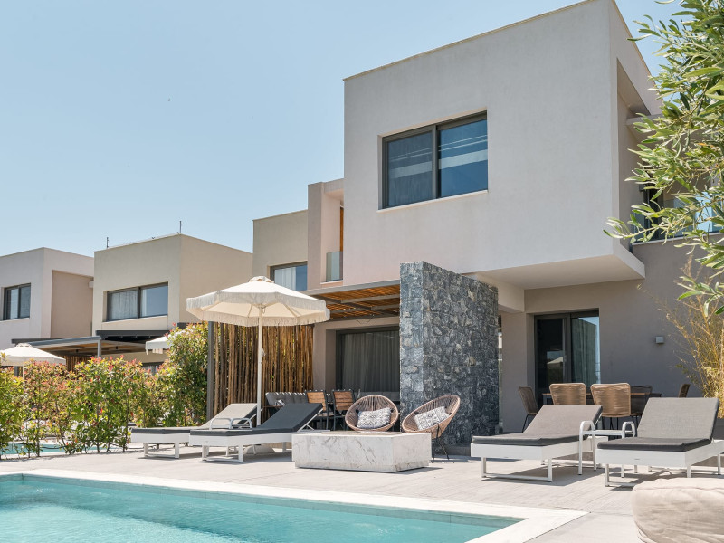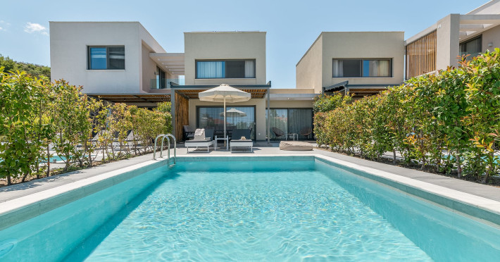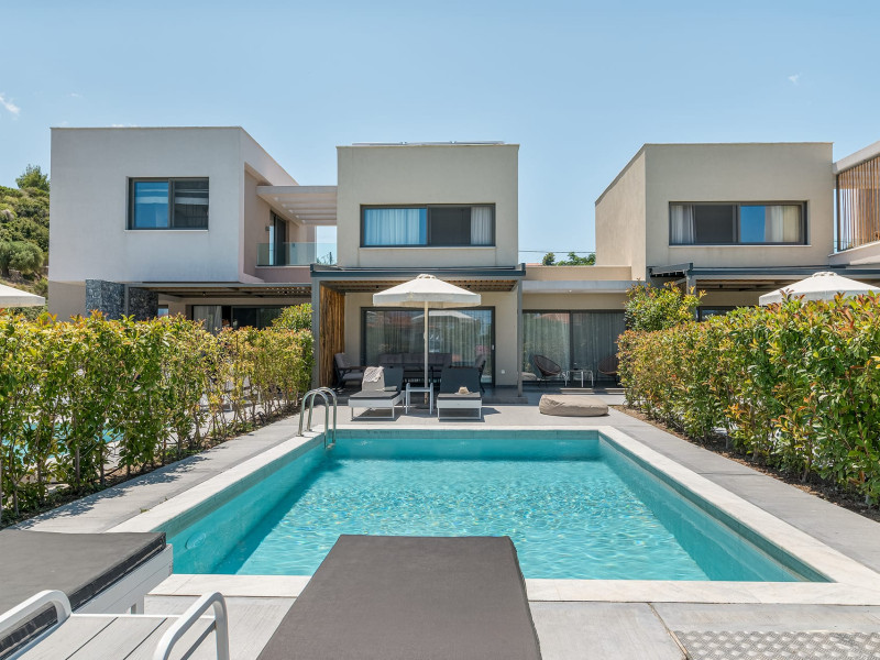 Dionisos Luxury Villas is a newly built complex of four luxury villas surrounded by olive trees aged more than a hundred years old. It is located in Pefkochori, Halkidiki, Greece.