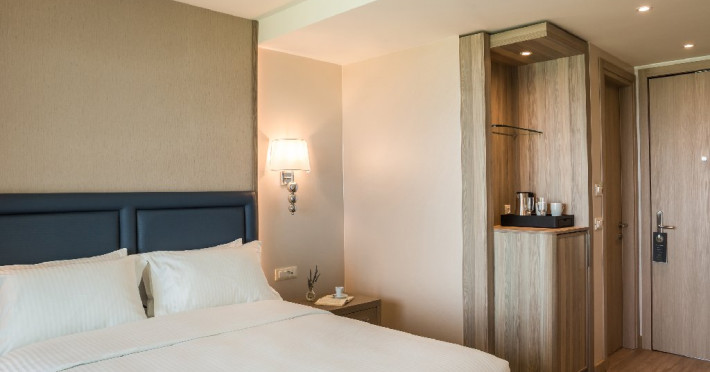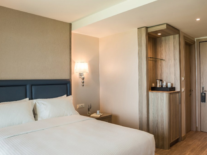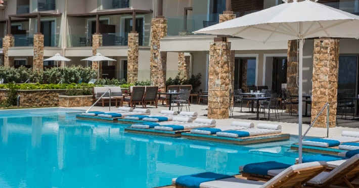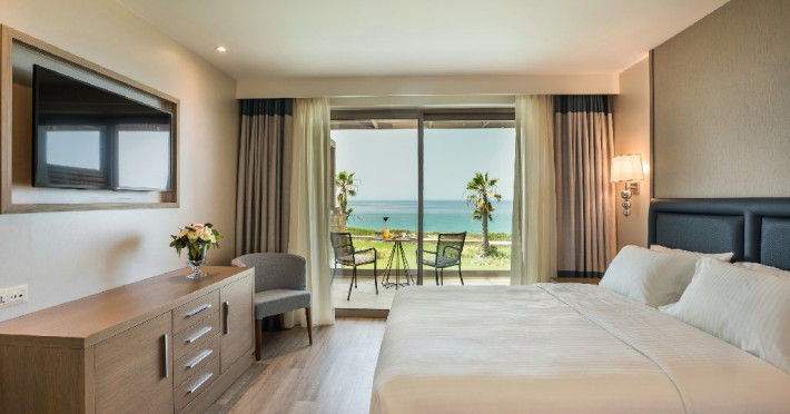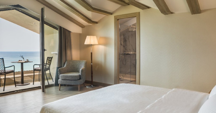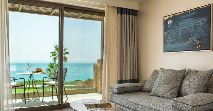 Dotari camere: Hotelul ofera camere si suite moderne, inclusiv camere duble cu vedere la mare, camere tip maisonette si suite premium, unele dintre ele cu piscina privata. Unitatile sunt dotate cu aer conditionat, Wi-Fi gratuit, TV cu ecran plat si canale prin satelit, minibar, seif, facilitati pentru prepararea cafelei sau ceaiului si baie privata cu uscator de par si articole de toaleta. Majoritatea camerelor dispun de balcon sau terasa cu vedere catre mare sau imprejurimi.