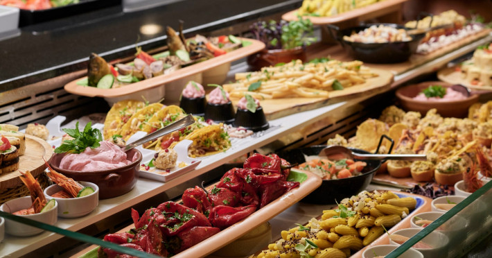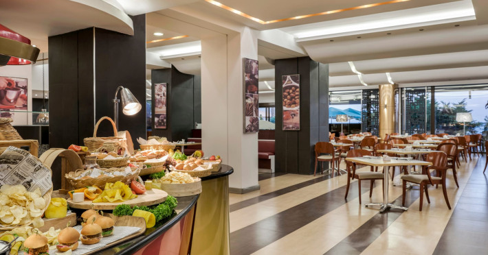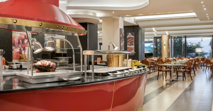 Lunchtime is a treat as well, with the Grill Station serving up traditional Greek souvlaki, and various grilled delights. For a taste of authentic Greek cuisine, guests can reserve a table at Kafenion, an outdoor eatery that exudes the charm of a Greek village. Here, they can savor local meze paired with ouzo or wine, creating an intimate and memorable dining experience. Pizza lovers will delight in the fresh and homemade ingredients that go into crafting delicious pizzas at the dedicated Pizza Station. Additionally, the variety of themed evenings offers extraordinary experiences, with each event beautifully showcasing an array of flavors and cuisines from around the world. The art of show cooking further elevates your experience, as skilled chefs prepare delightful dishes right before your eyes.