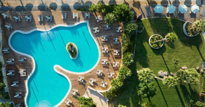 One of the highlights of Esperos Mare Resort & Spa is its award-winning Blue Flag beach, providing a tranquil haven for sunbathing and water-based activities. There is a splendid pool area as well, complete with a Lazy River that includes rings for leisurely floating. Additionally, guests can take advantage of the indoor pool, which is heated during the cooler months of April, May, and October. Sunbeds, towels, and umbrellas are thoughtfully provided for guests' comfort both at the pool and the beach.