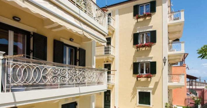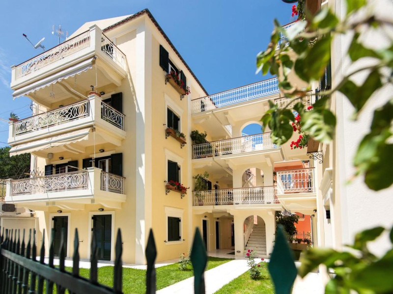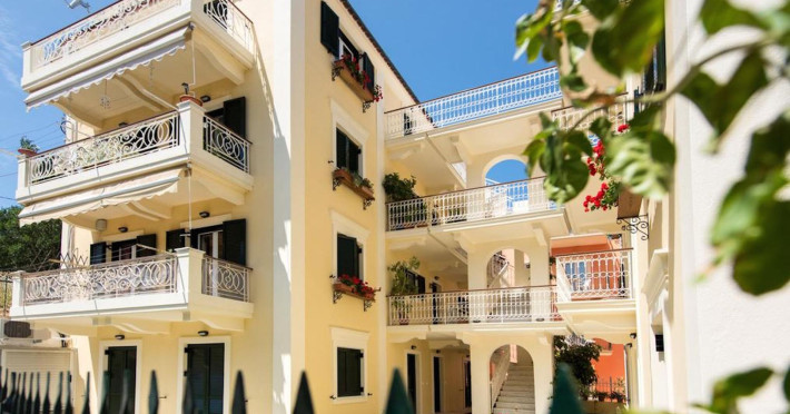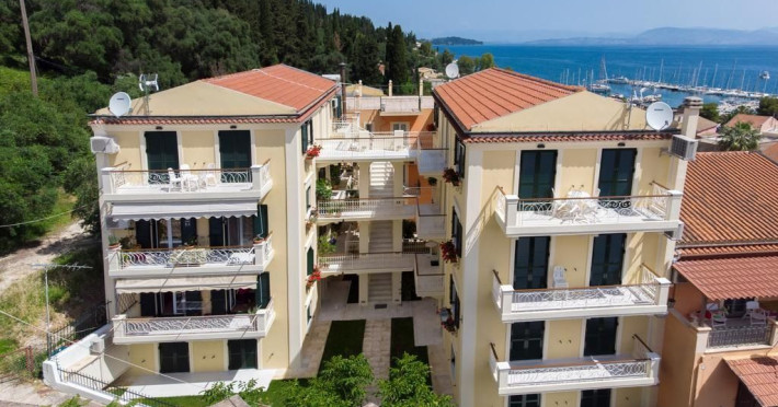 The ideal location of Filoxenia "kirki" Apartments in the heart of the traditional village of Benitses in Corfu Island, is just a few minutes walk away from a wide choice of eating and drinking establishments, the beach, bakeries, supermarkets, gift shops and car/ motorbike rental companies.