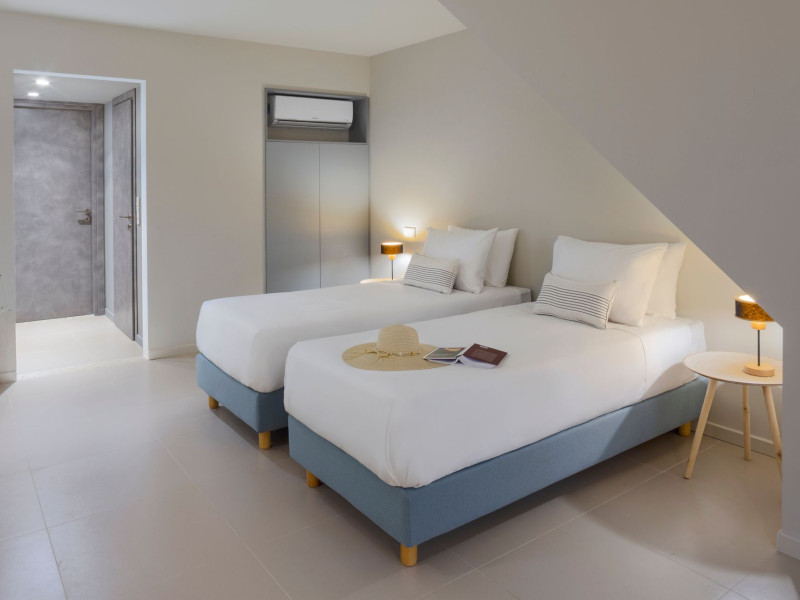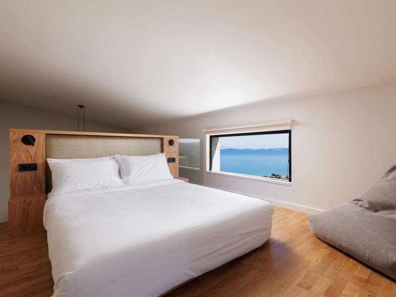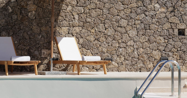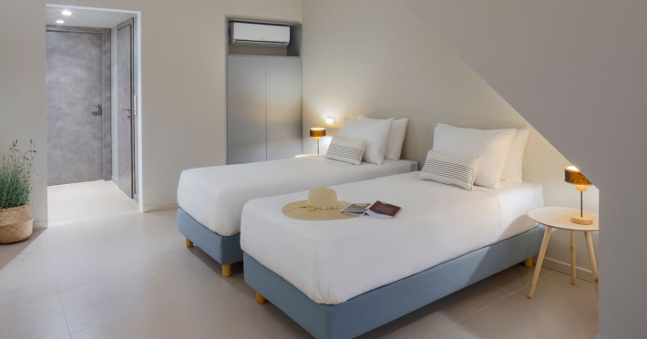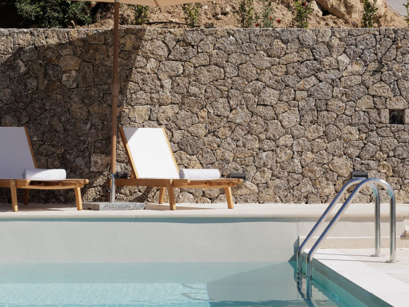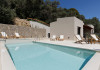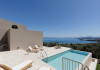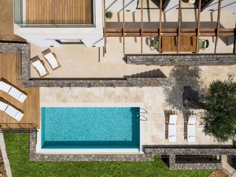 The interior of the villas consists of 3 bedrooms, 3 bathrooms, a living room, and a fully equipped kitchen. The outside areas offer many options; a shaded pergola with a large dining table, an outdoor barbecue, a rooftop balcony, and sunbeds and deckchairs all around the infinity edge swimming pool.