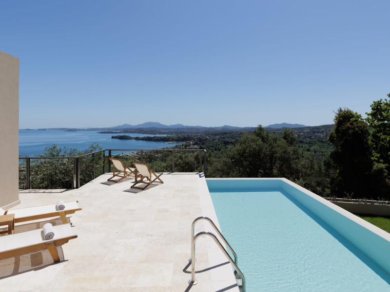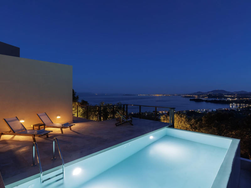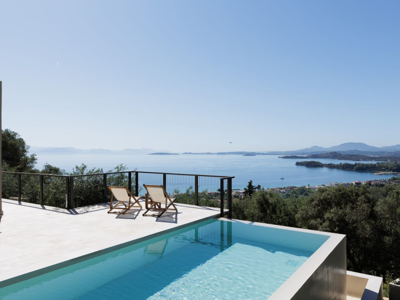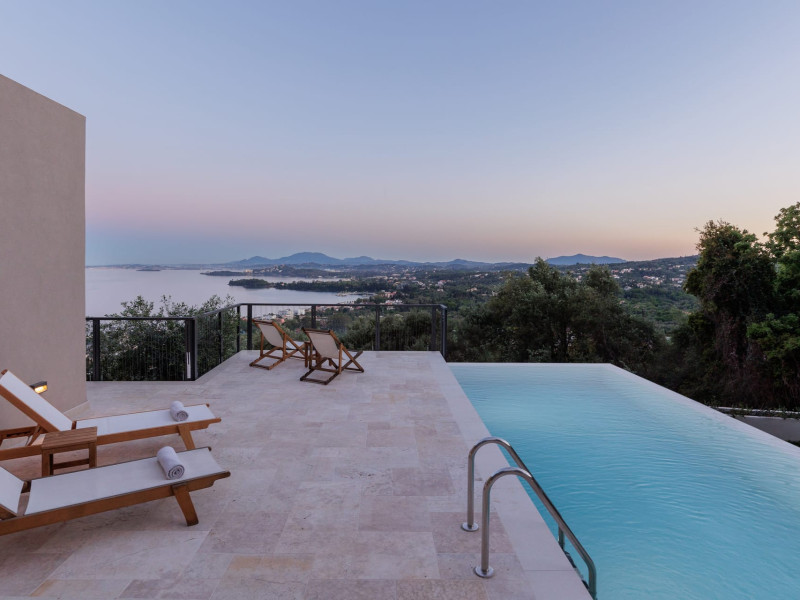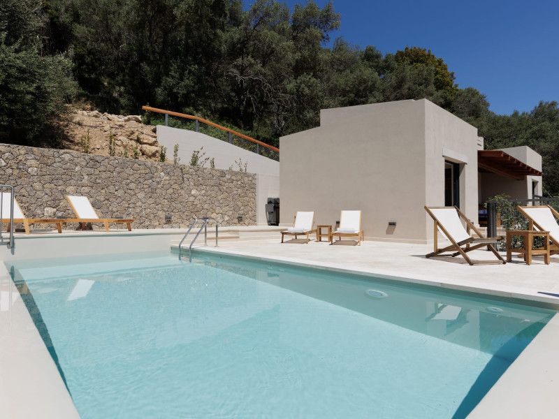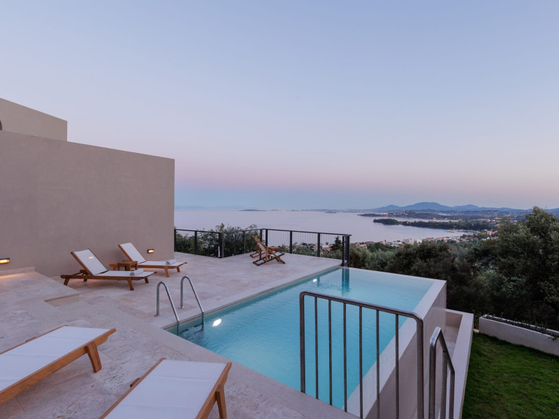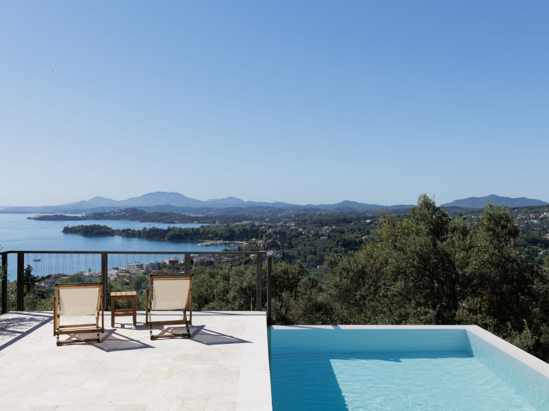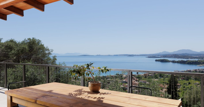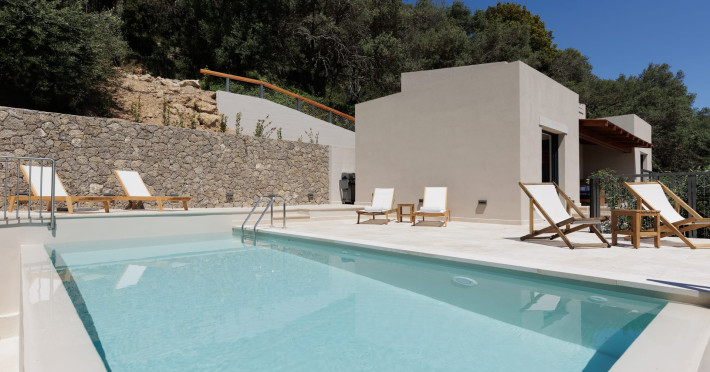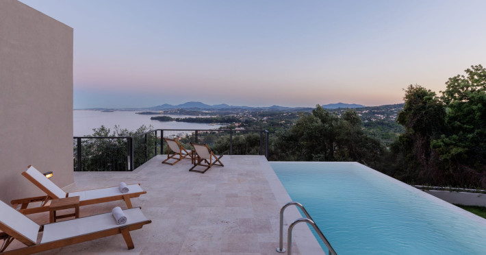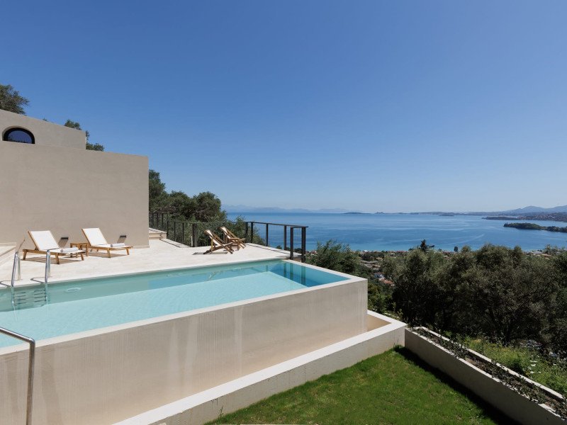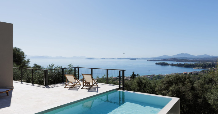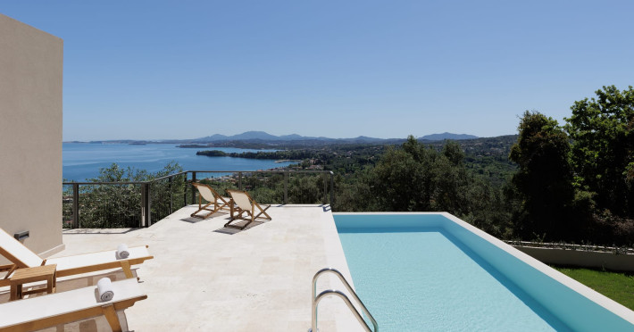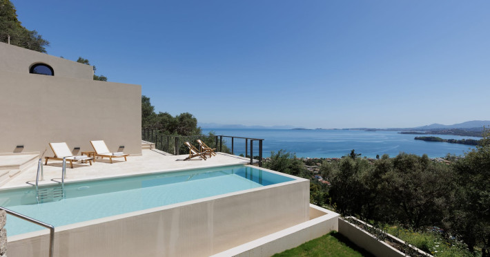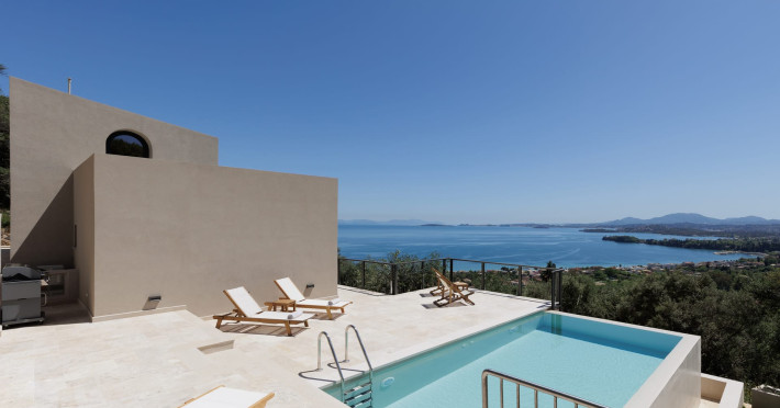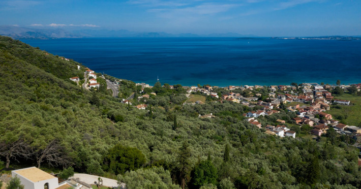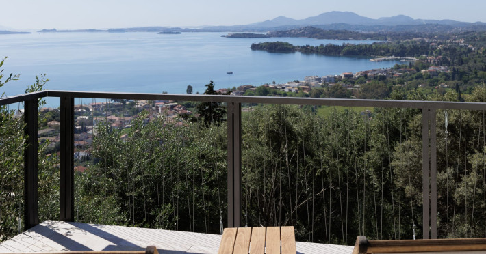 Greenstone Villas are situated in the northeastern part of the island, only 3 kilometers from the coast. They have been built on an old olive grove, offering complete privacy and tranquility. The entire property offers breathtaking panoramic views of the Ionian sea stretching right across to the mountains of mainland Greece. Within 20 minutes' walking distance is the coastal village of Ipsos, with its long beach and beautiful blue waters. It offers all the amenities that you may wish for with a large range of restaurants, tavernas, supermarkets, gift shops, and watersports.