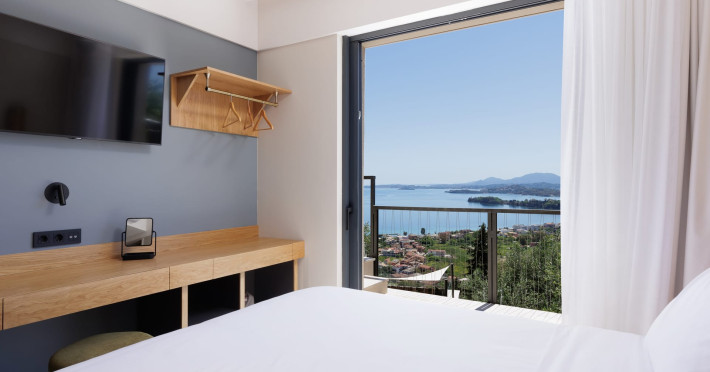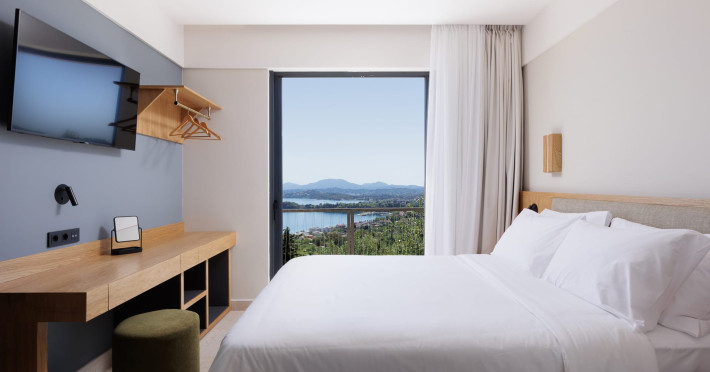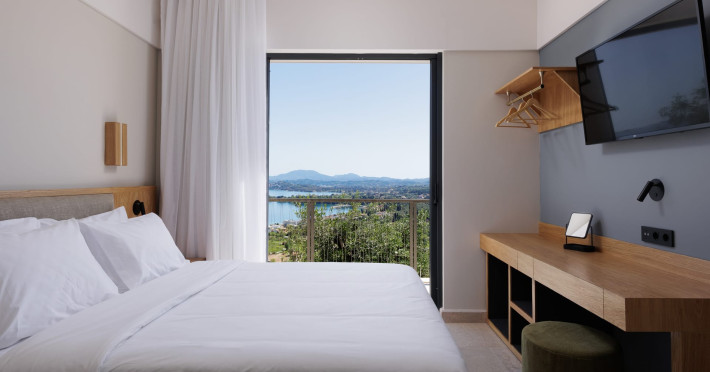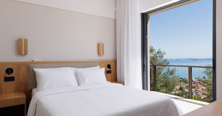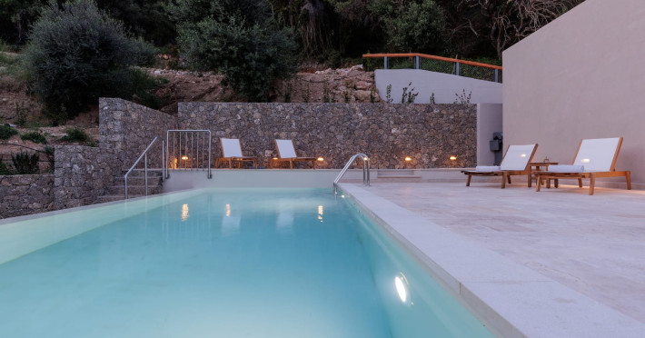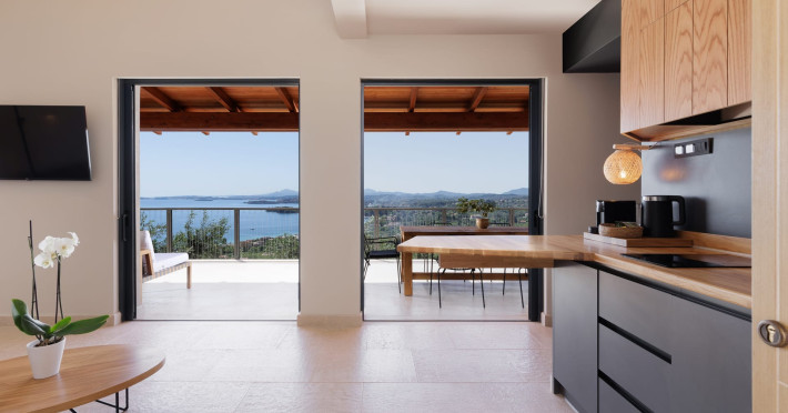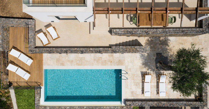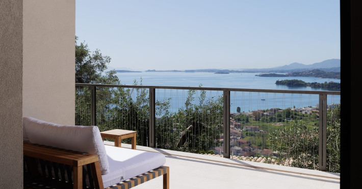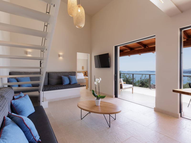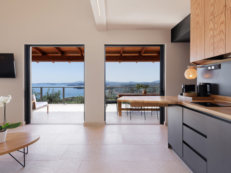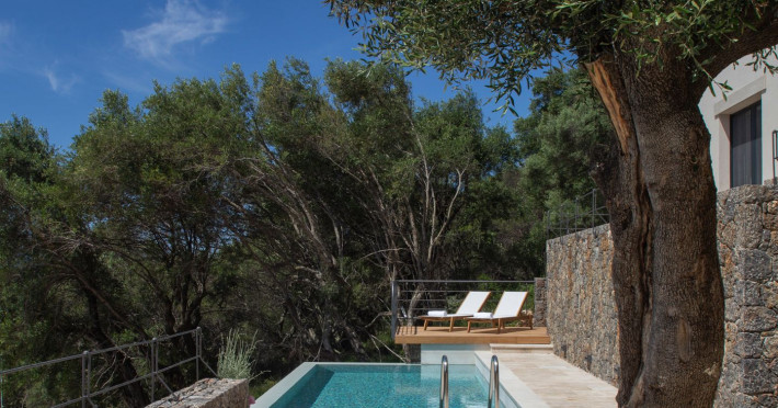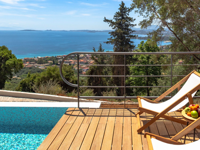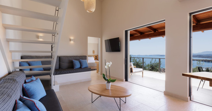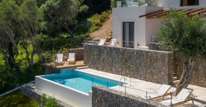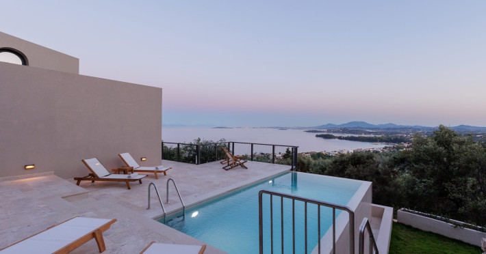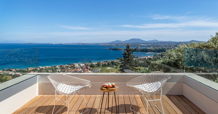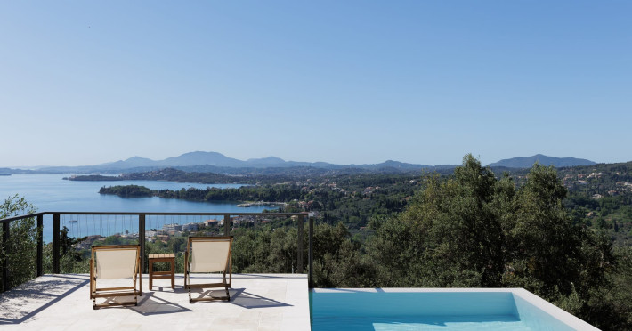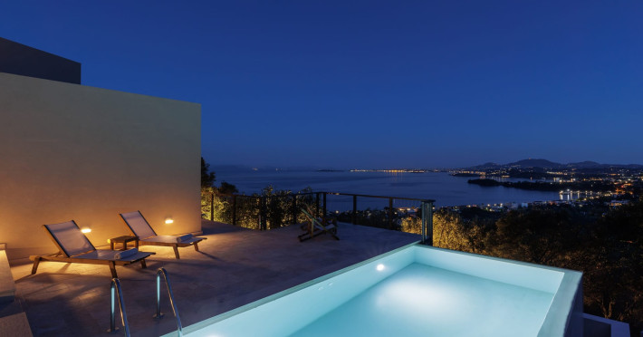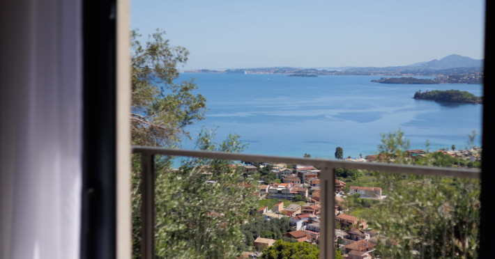 Greenstone Villas are situated in the northeastern part of the island, only 3 kilometers from the coast. They have been built on an old olive grove, offering complete privacy and tranquility. The entire property offers breathtaking panoramic views of the Ionian sea stretching right across to the mountains of mainland Greece. Within 20 minutes' walking distance is the coastal village of Ipsos, with its long beach and beautiful blue waters. It offers all the amenities that you may wish for with a large range of restaurants, tavernas, supermarkets, gift shops, and watersports.