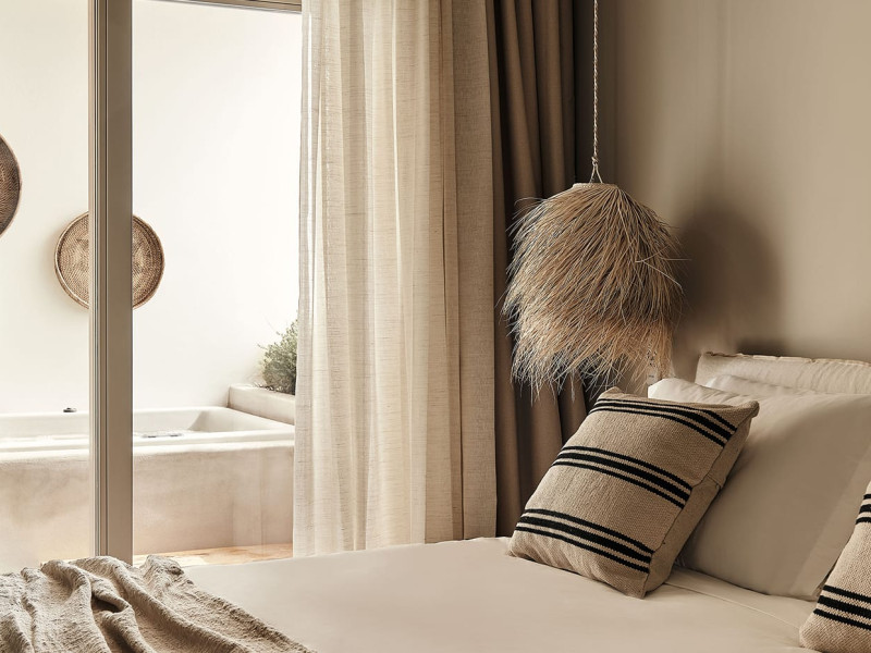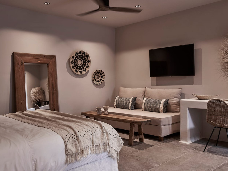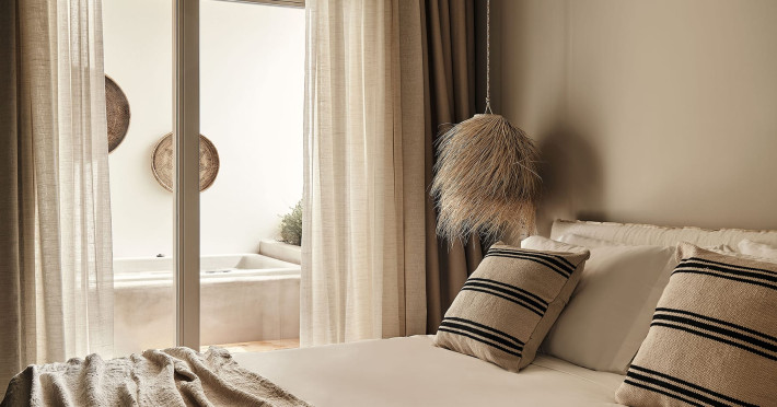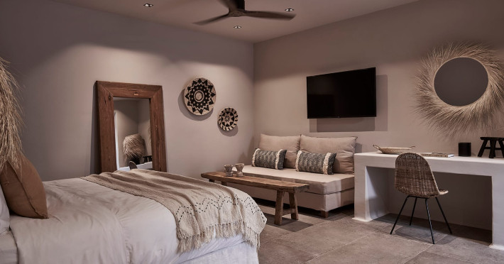 Amyth of Mykonos Agios Stefanos is a sanctuary for the soul: a hideaway haven of ’at-home’ hospitality that encourages a deeper experience of Mykonian life at its blissed-out, laid-back best. Retreat to 17 boho-luxe rooms for cosy residential amenities, indulgent chilling and private party buyouts -all just minutes from the island’s hottest spots.