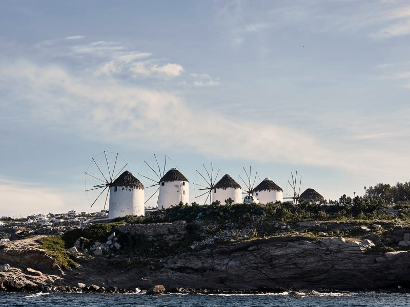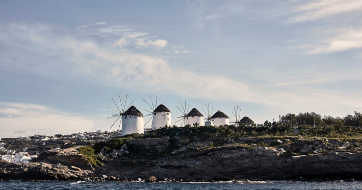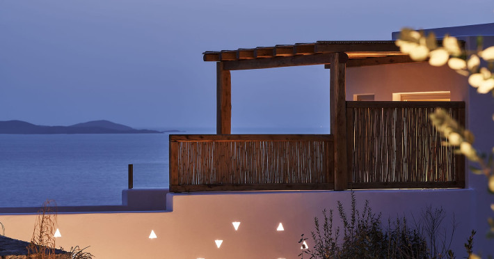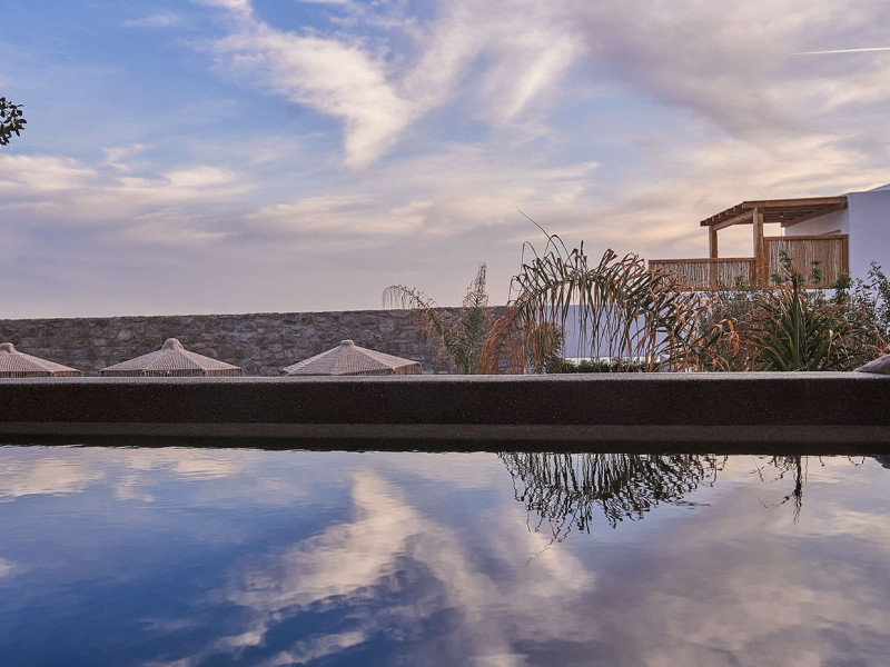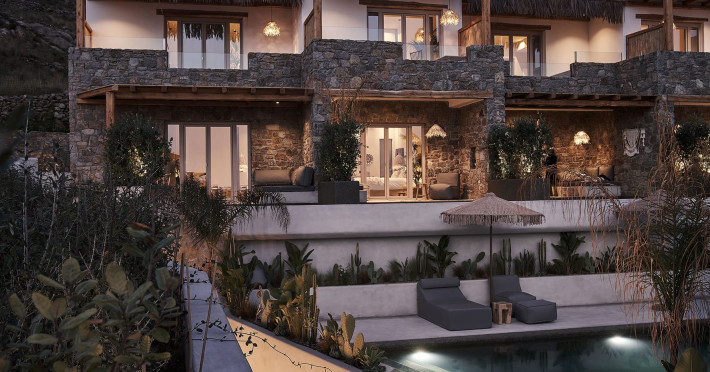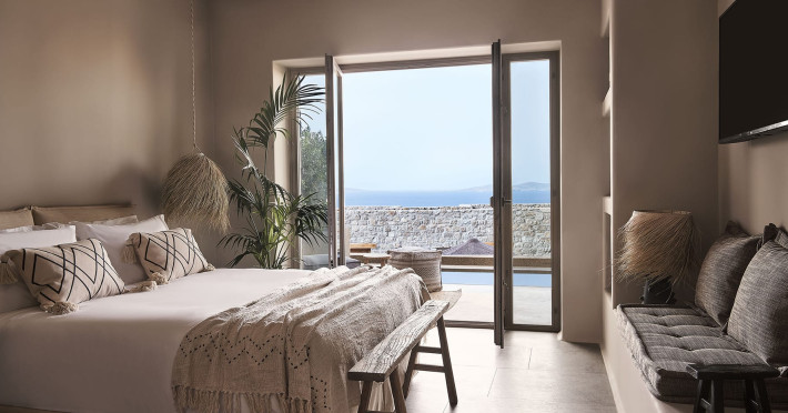 Amyth of Mykonos Agios Stefanos is perched on a hilltop at the edge of the quaint former fishing village of Agios Stefanos. Overlooking the iconic turquoise bay of Mykonos Town, Amyth of Mykonos is just a few minutes’ walk from the sandy bay of Agios Stefanos, with its shallow crystal waters, tavernas, and Delos island views.