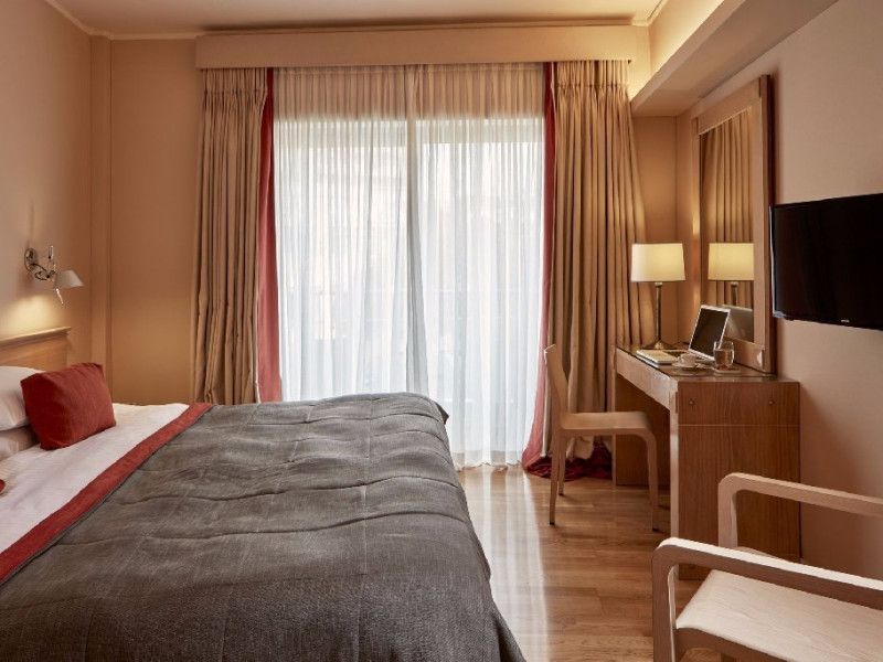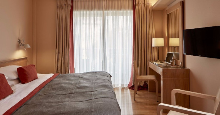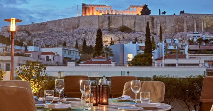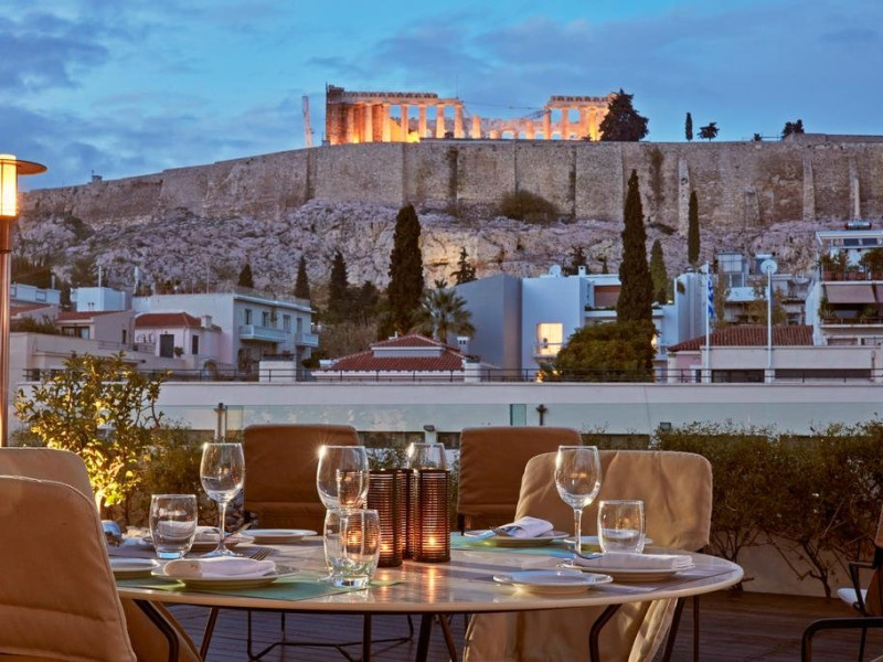 Localizare: Hotelul Herodion imbina eleganta clasica si designul contemporan, dedicandu-se celor mai inalte standarde ale ospitalitatii ateniene. Hotelul este situat in imediata apropiere a Acropolei (la doar 400 m) si la 100 m distanta de Muzeul Acropolei. Statia de metrou este la 200 m distanta de hotel. Facilitati hotel: lobby lounge, patio lounge, terasa pe acoperis cu jacuzzi si cu vedere la Acropole, restaurant, bar, soln pentru micul dejun, Atrium bistro. Dotari camere: 18 mp, baie, fierbator pentru preparare ceai/ cafea, minibar, aer conditionat, seif, izolare fonica, incalzire, TV, telefon, wifi gratuit. Pagina web: https://www.herodion.gr/en/