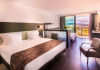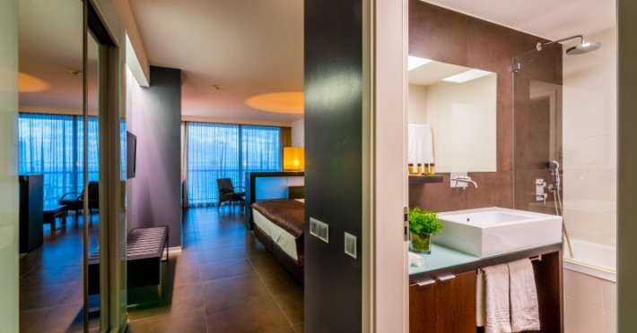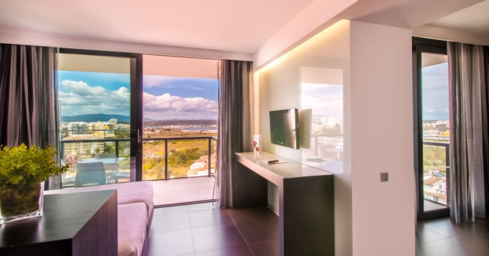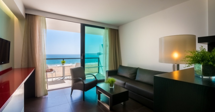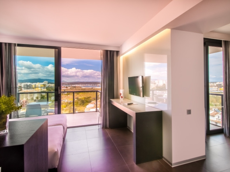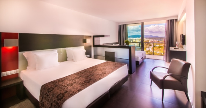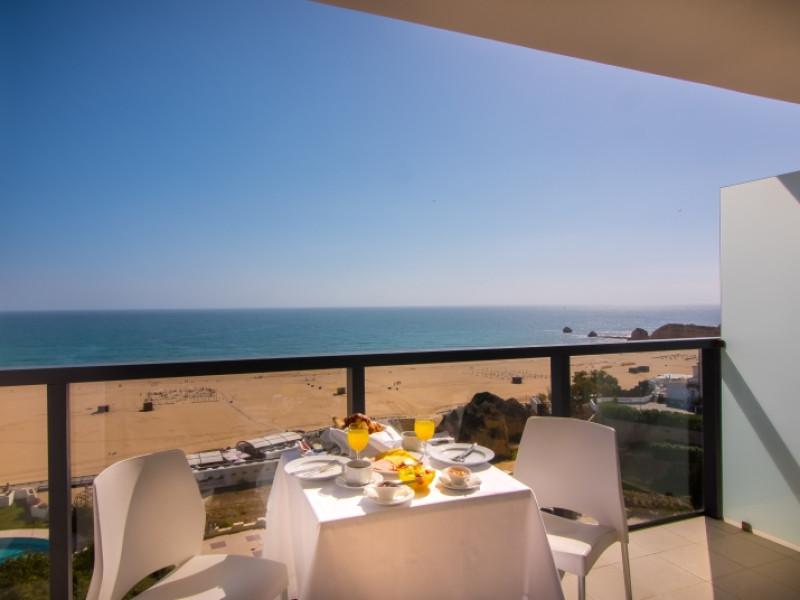 This establishment provides 158 comfortable suites with a modern designoverlooking spectacular views on the Praia da Rocha Beach or on the city ofPortimão and the Monchique Mountains. Each suite, most with areas of 40 m2 andbalconies 6 m2, is equipped with a king-size bed or 2 twin beds with highquality mattresses, air conditioning, 2 flat screen cable TV (room and livingarea), direct access telephone, free safety deposit box, minibar (extra cost)and with free internet Wi-Fi, kitchenware (tea and coffee utensils), microwave,electric kettle, fully equipped bathroom with shower, hairdryer, bath amenitiesand a balcony with furniture.