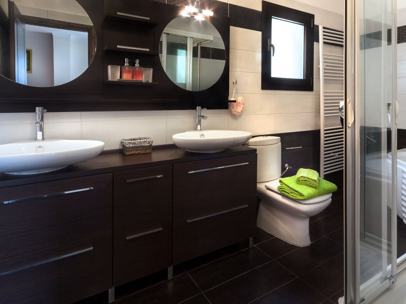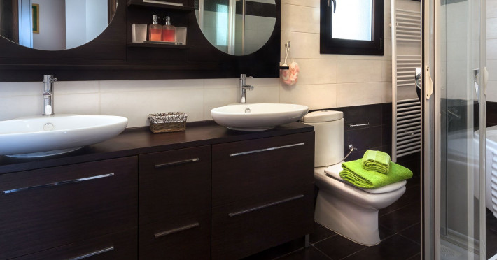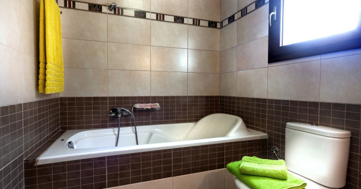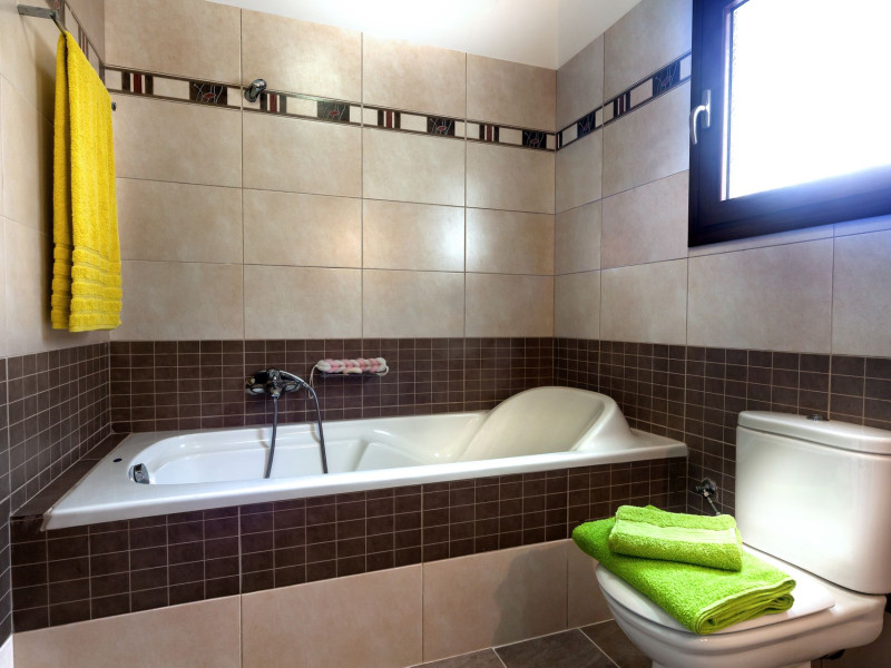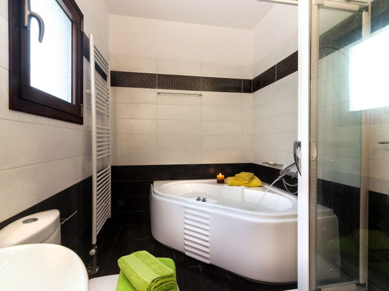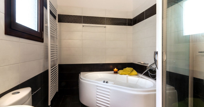 1 bathroom downstairs, with a washing machine which is essential if one stays long, and another 2 bathrooms in the upper floor. One of them is with bath tub share between 2 double bedrooms. The other one is in the Master bedroom (en suite) and features 2 water basins, a shower cabin and a Jacuzzi bath tub.