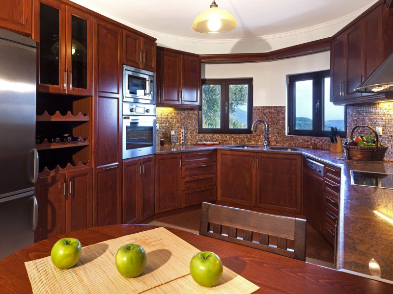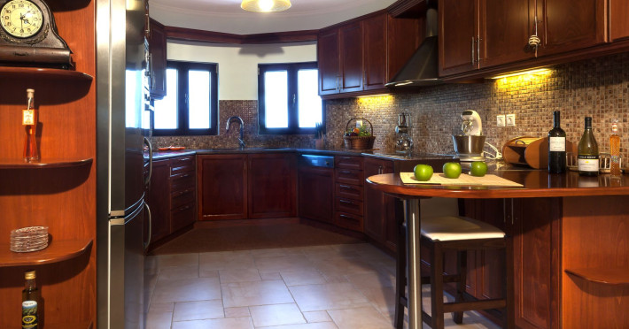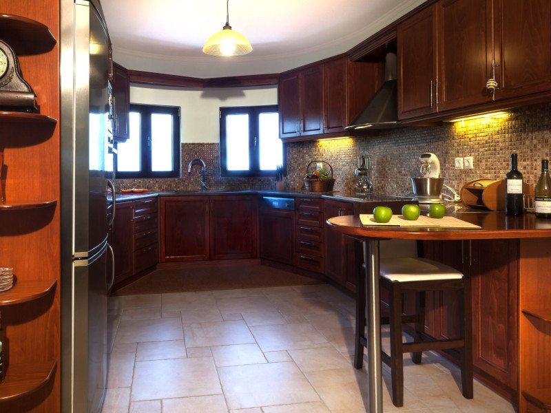 Large, brand new, open plan fully equipped kitchen with a large dining table and enough space to sit 10 guests. Oven, large fridge/freezer, dish washer, stove, electric kettle, toaster, kitchenware & kitchen utensils, pans, kettle and anything one may need in order to prepare meals and enjoy the flavors of the local products!
