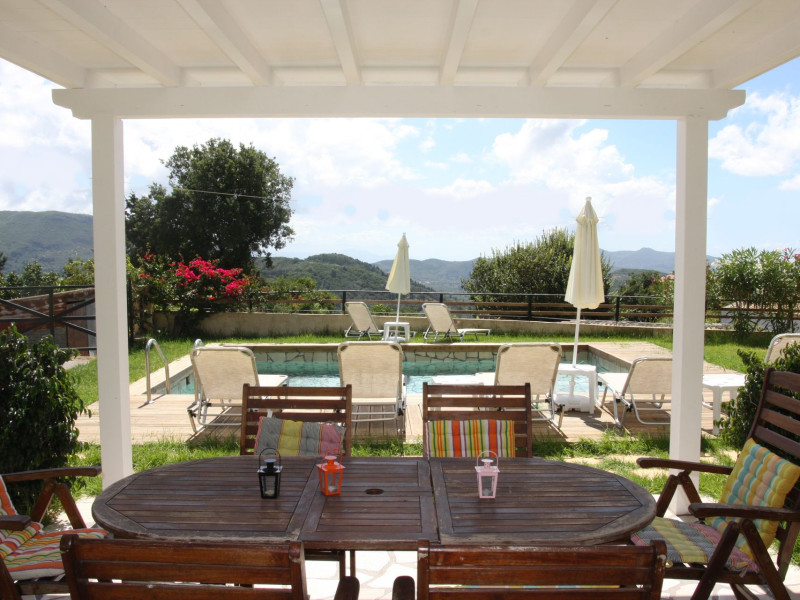 Large veranda with sitting and outdoor dining furniture. A gazebo for relaxing afternoon cocktails or tea. Built-in BBQ facilities available for a real countryside outdoor dining experience. A dip pool (small swimming pool) and sun loungers also available in order to enjoy the endless interaction of light and nature. Well maintained gardens that offer beautiful surroundings & privacy and parking space for 2 car seats. Your private (pick-your-own), small organic farm, for a real taste of Corfiot local products.