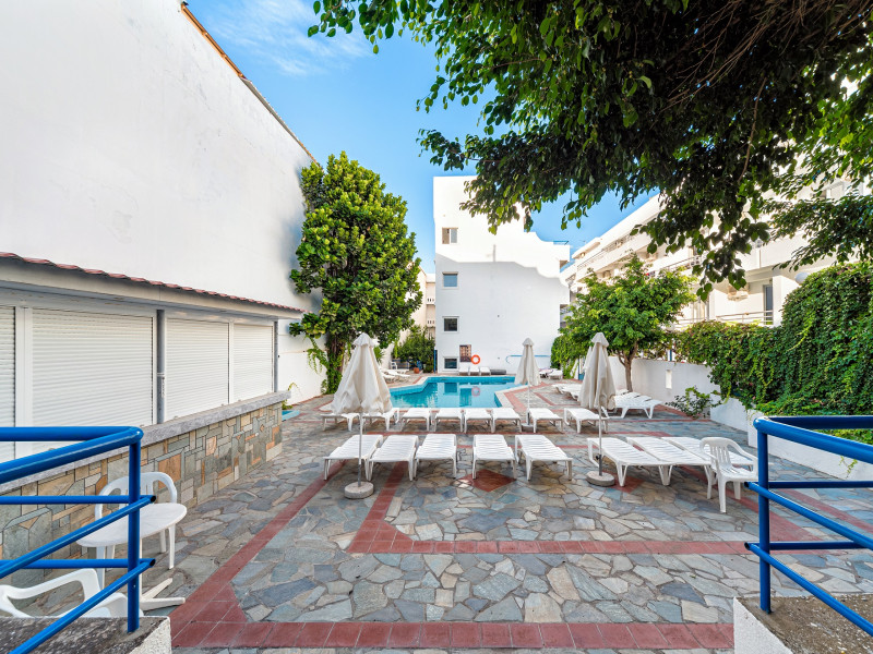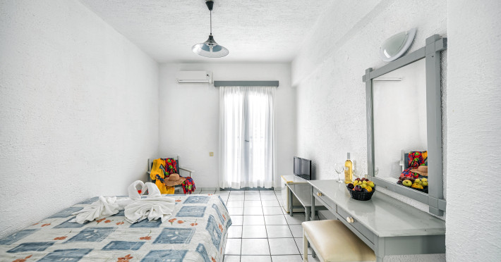 Iro Hotel is ideally situated in the cosmopolitan resort of Hersonissos, just 100 meters from the beach and 500 meters from the towns center. It is built in three floors, with total capacity of 53 rooms in traditional Aegean style, which are able to host up to three guests.