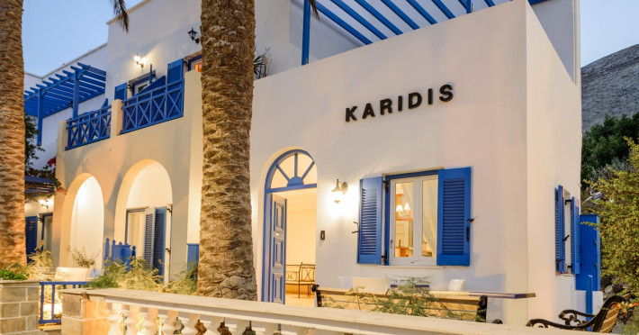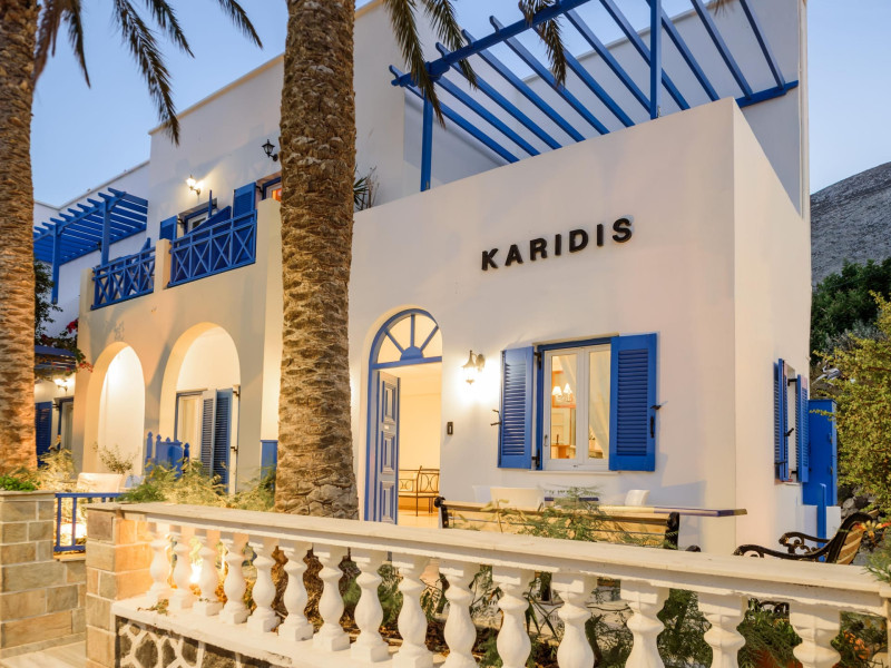 Karidis Hotel is situated in Kamari only 120 meters from one of the island's most cosmopolitan beaches, 5 meters from the bus station and near to restaurants and cafe. The hotel is 4 km from the airport and 9 km from Fira the island's capital.