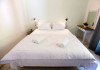 bar and kettle. The second of a king size bed, 42in T.V., A.C., wardrobe and