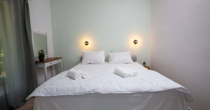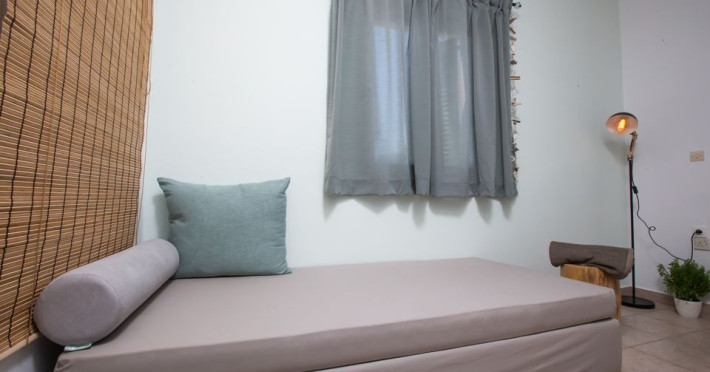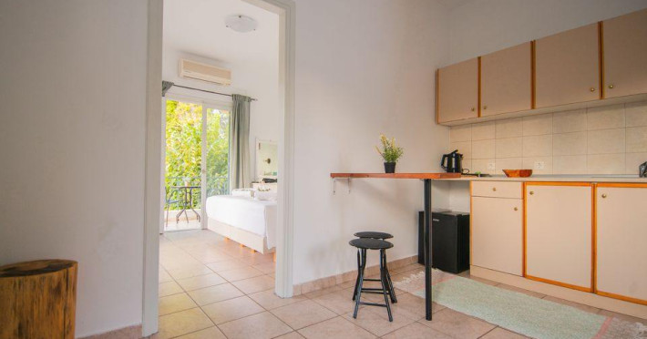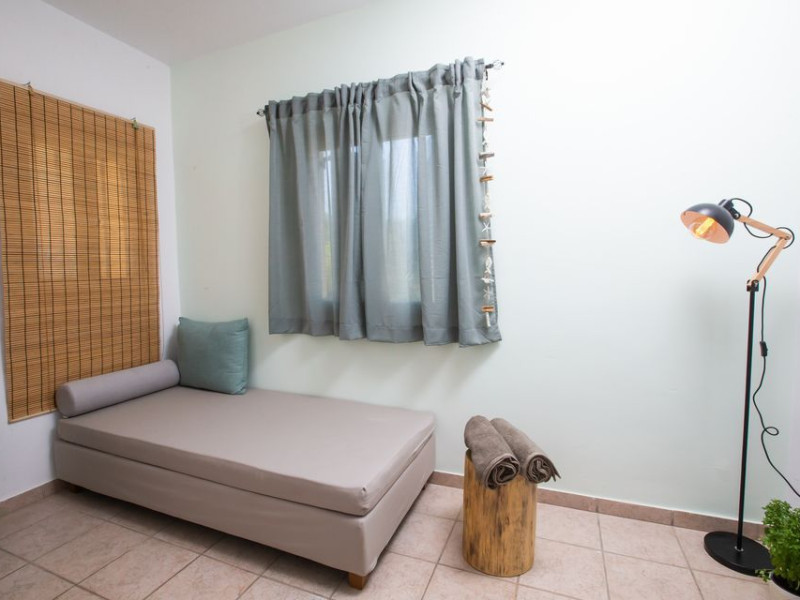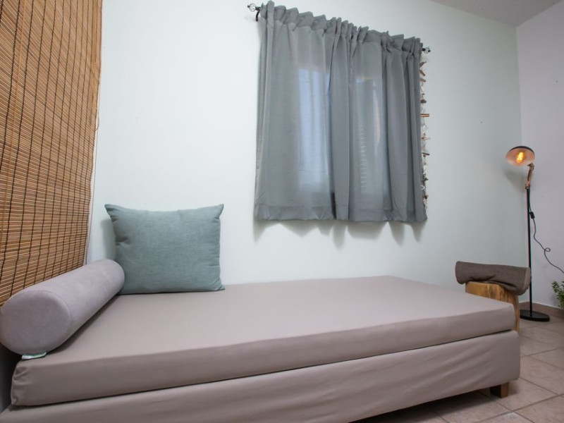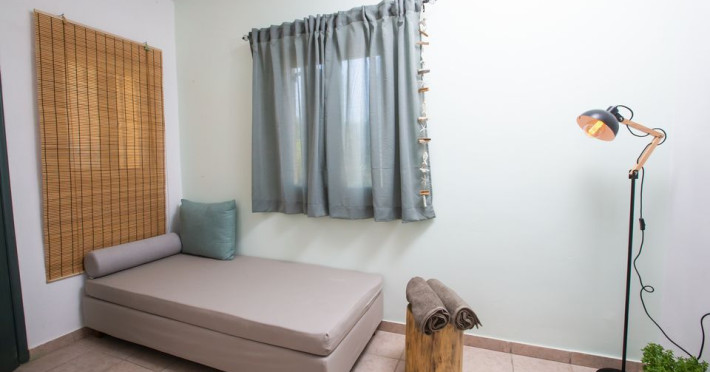 is divided into two main areas. The one consists of a single bed, bathroom, mini