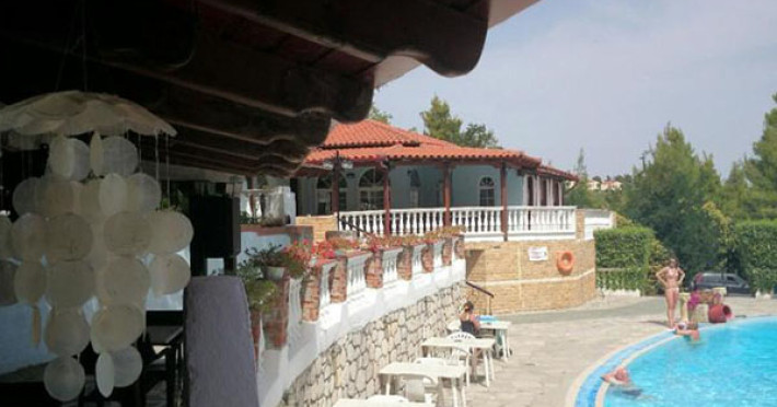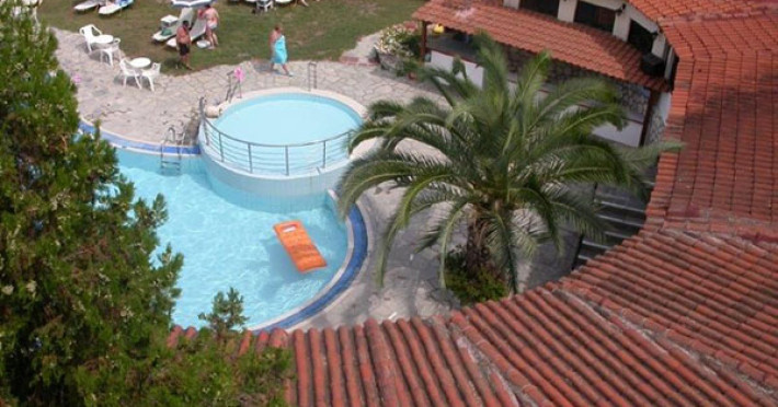 The hotel is situated just 600 meters from the beach and 700 meters from the village of Kriopigi in Kassandra, Chalkidiki. The hotel has a large pool area with shallow children’s pool offering plenty of sunbeds and umbrellas. The hotel pool bar has a great atmosphere, serving snacks and drinks throughout the day and into the night.