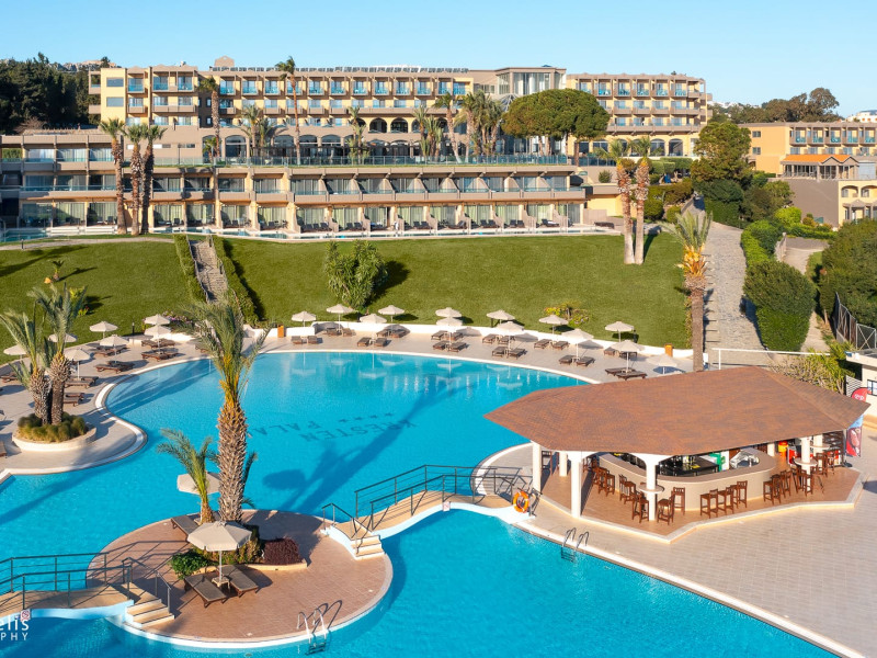The 4 stars Kresten Palace Hotel & Wellness built in modern style combined with traditional Rhodian architecture surrounded by 60.000 m2 extensions, offers 285 fully-equipped rooms.Last renovation: winter 2023-2024All rooms include private facilities, balconies or terraces with magnificent view, a direct dial telephone, Satellite TV with music channels, mini fridge, safety deposit box, hair dryer and air-conditioning. A variety of facilities, animation, and entertainment are at your disposal during your stay with us.