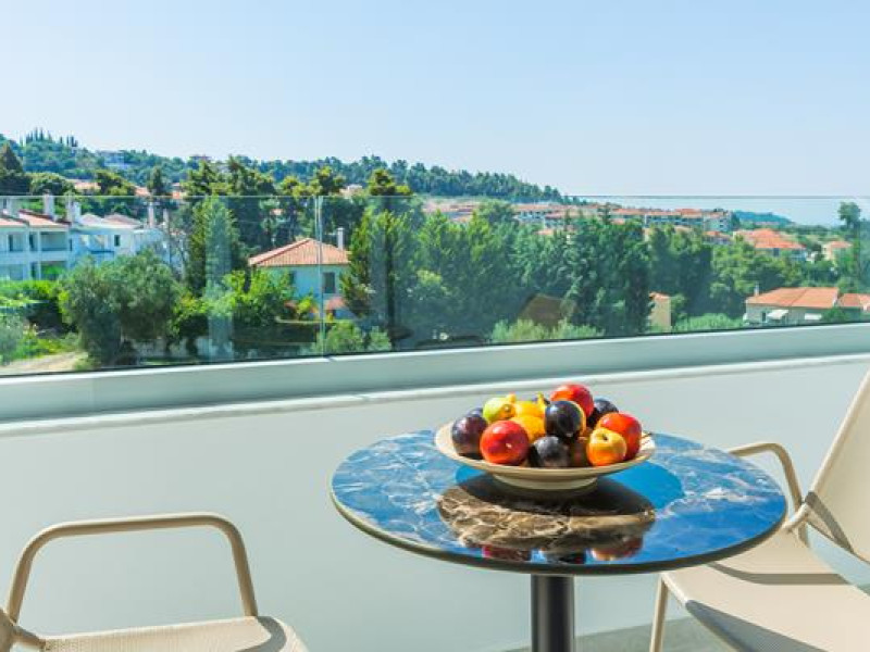 Built at the most privileged spot of the village, at 120 m of altitude, by the woods, offers unlimited view to the Toroneos gulf and the entire area of Sithonia.
