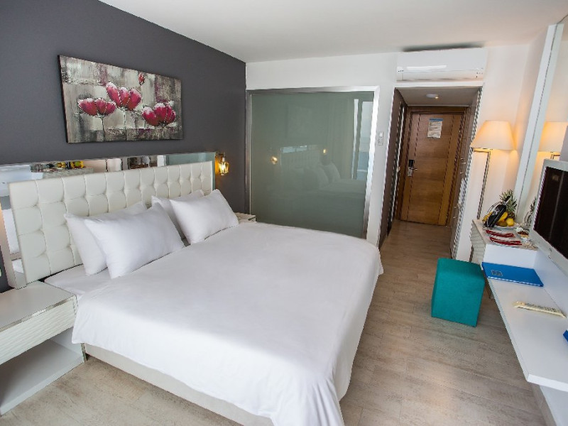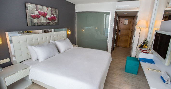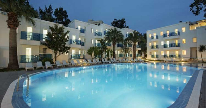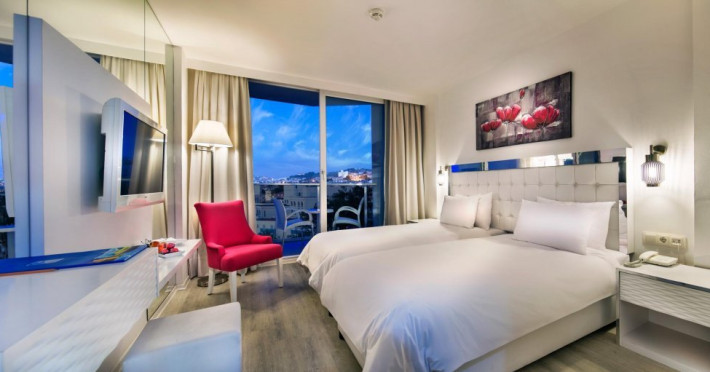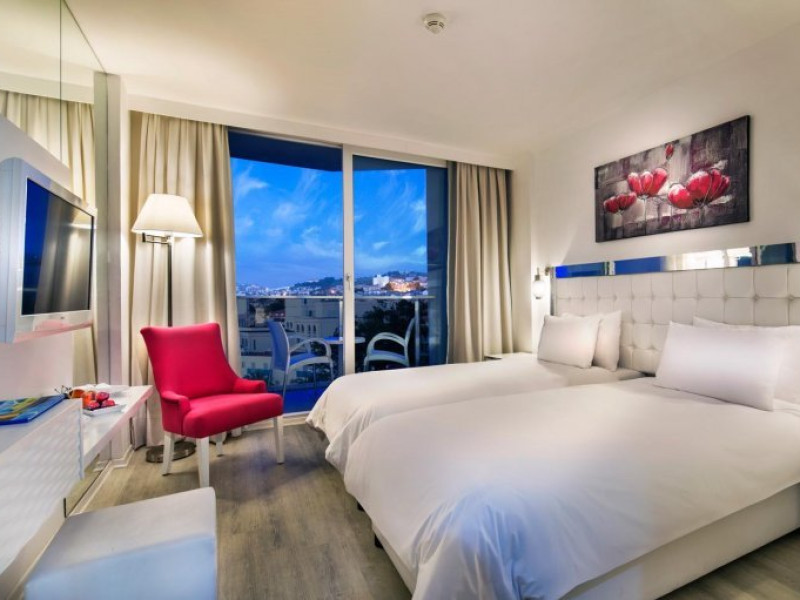 ***Informatii referitoare la hotel*** Localizare: Hotelul se afla pe plaja, la 3 km de centrul orasului Kusadasi, la 70 km de Aeroportul Izmir, la 29 km de faimosul oras antic Ephesus si 119 km de aeroportul din Bodrum. Facilitati camere:Toate spatiile de cazare ale hotelul cuprind dotari generale precum: grup sanitar propriu, aer conditionat, uscator de par, balcon, TV LCD, internet wireless, produse pentru baie, minibar, seif. - camera cu vedere la gradina (suparafata 22mp) cu 2 paturi de o persoana sau 1 pat dublu mare. Se poate adauga maxim un pat suplimentar. - camera cu vedere la mare (suparafata 22mp) cu 2 paturi de o persoana sau 1 pat dublu mare. Se poate adauga maxim un pat suplimentar. - suita (suparafata 35mp) alcatuita dintr-un living si un dormitor, oferind posibilitatea de a observa cele mai frumoase vederi ale orasului Kusadasi - junior suite (suparafata 30mp) este dotata cu 1 canapea extensibila si 1 pat dublu mare, ideale pentru oaspetii cu copii. - king suite (suparafata 42mp) cuprinde o terasa, fiind o optiune eleganta, cu living si dormitor spatios. Facilitati hotel: acces imediat la plaja, terasa, gradina, tenis de masa, biliard, teren de joaca pentru copii, camera de jocuri, teren de tenis, snack bar, camera de bagaje, birou de turism, schimb valutar, recepie, babysitting, serviciu de calcatorie, curaatorie chimica, facilitai pentru persoane cu mobilitate redusa, spalatorie, seif, lift, serviciu de transfer, bar, restaurant, internet wireless, parcare in limita locurilor disponibile, servicii de transfer, spa si centru de wellness (sala de fitness, piscina exterioara, masaj, sauna) Plaja: privata cu nisip si ponton. Sezlongurile, umbrelele si prosoapele contra cost. Piscine: 1 piscina principala de 300 mp pentru adulti ,o piscina de relaxare de 200 de mp si 2 piscine mici pentru copii cu tobogane.