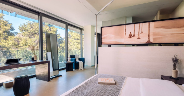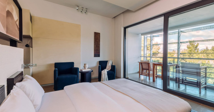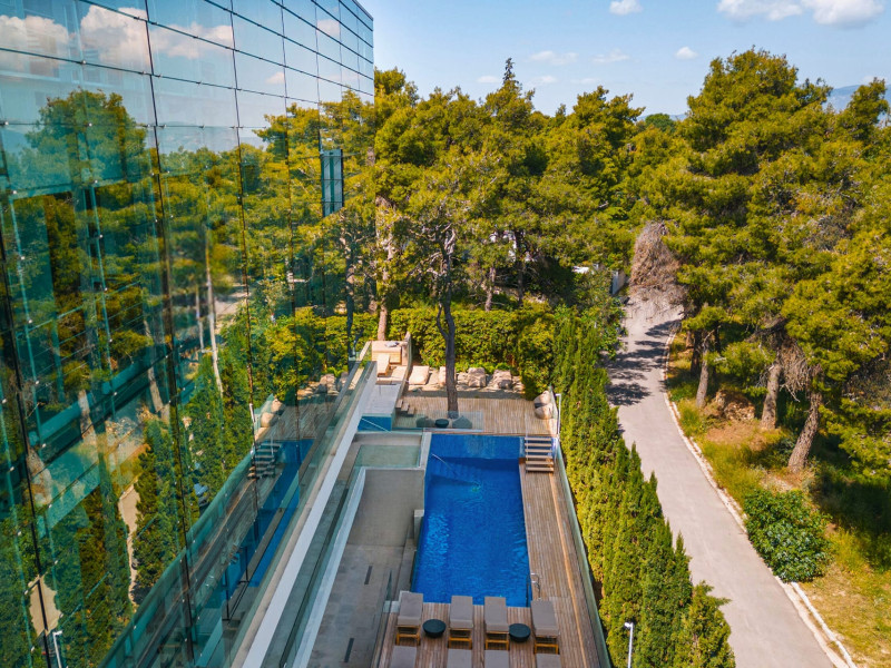Welcome to Life Gallery Athens HotelA sense of balance and tranquility, nature and inspiration, light and creation, all come together at “Life Gallery Athens”, located in the sophisticated suburb of Ekali.Modern architecture finds its expression in a minimalistic, airy designed building with glass surfaces, discreet swimming pools, Zen gardens, ethnic elements and out-door verandas, which all combined in absolute harmony with nature.The hotel offers twenty nine spacious, beautifully set out, luxury rooms, including three art studios of high aesthetic standards and two suites, designed in such a way as to fully cover our guests’ every need. All the rooms are furnished with original permanent fixtures and designer-name furniture and objects, while the lighting is left totally up the guest, enabling him to create the mood he desires. Each room is designed inside a single space. The beds are placed in the center, facing the large opening with a view to the balcony-atrium and to the natural environment outdoors.The Kool Life Bar, in warm red tones, radiates life and rhythm. Sitting in one of its plush armchairs, you can enjoy your drink or cocktail. Meanwhile, the bar’s DJ will explore the musical globe.All public areas are comfortable, minimalistic and bright, allowing the view into the interior of the hotel before you descend the staircase. Life Gallery athens features five conference rooms with state of the art audio visual equipment, high-end facilities and modern amenities that are sure to convert all business meetings and conference sessions into successful and memorable meeting events. Regarded as one of the best Athens business hotels, the Life Gallery athens ensures that every business runs smoothly and efficiently.