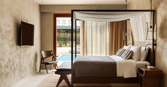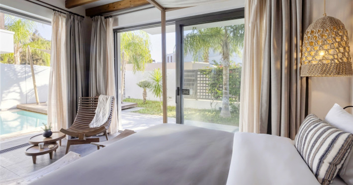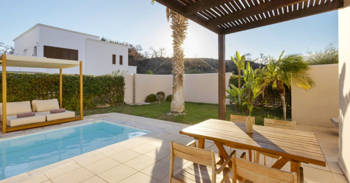 Suita, 1 dormitor, Deluxe, piscina privata (suita cu piscina privata River Passage): living si dormitor separate printr-o usa, total aproximativ 50 m2, piscina privata cu jeturi, gradina privata.