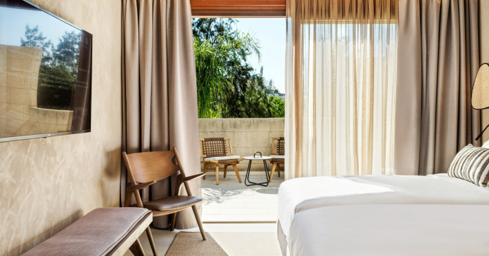 Camera dubla (clasica mediteraneana): baie/toaleta (uscator de par, halat de baie, papuci), aer conditionat individual, telefon, TV/sat., seif, minibar contra cost, balcon sau terasa, 30 m2.