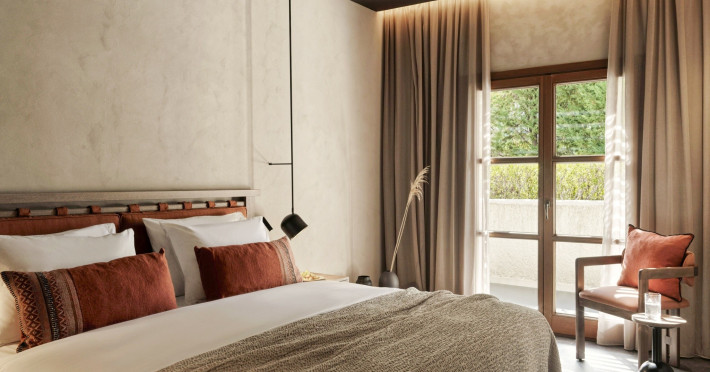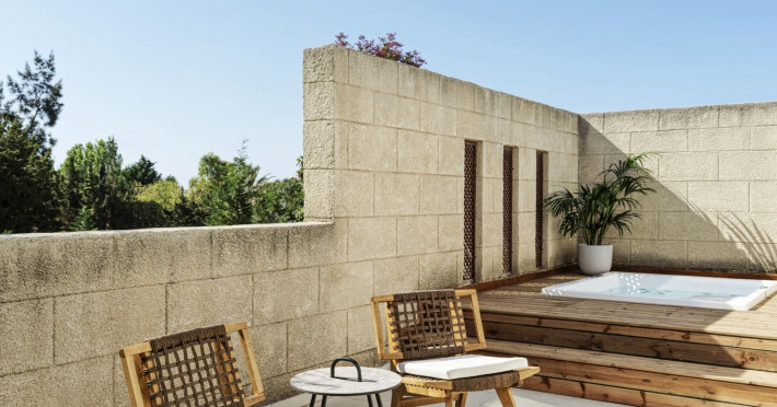 Junior suite, Deluxe (Ottoman Junior suite, jacuzzi): o camera mai spatioasa, aproximativ 40m inclusiv zona de luat masa, pergola din lemn, balcon cu jacuzzi exterior.