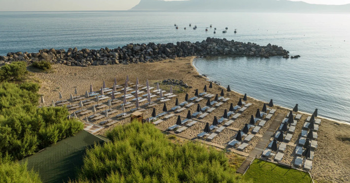 The hotel offers a unique mixture of comfortable and family-friendly accommodation options with a total number of 45 Suites and Junior Suites, as well as a complete holiday experience accomplished by its modern and luxurious services, free open-air pool, fully equipped fitness and wellness facilities, as well as a Cretan traditional breakfast at our all day beach bar– all accompanied by an astonishing view of the deep blue Cretan sea!