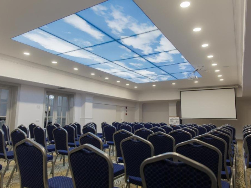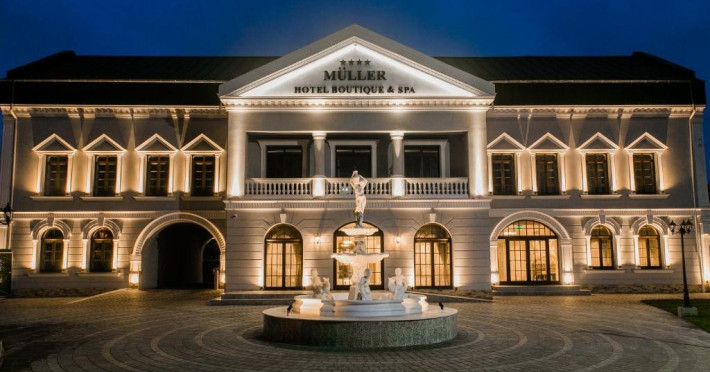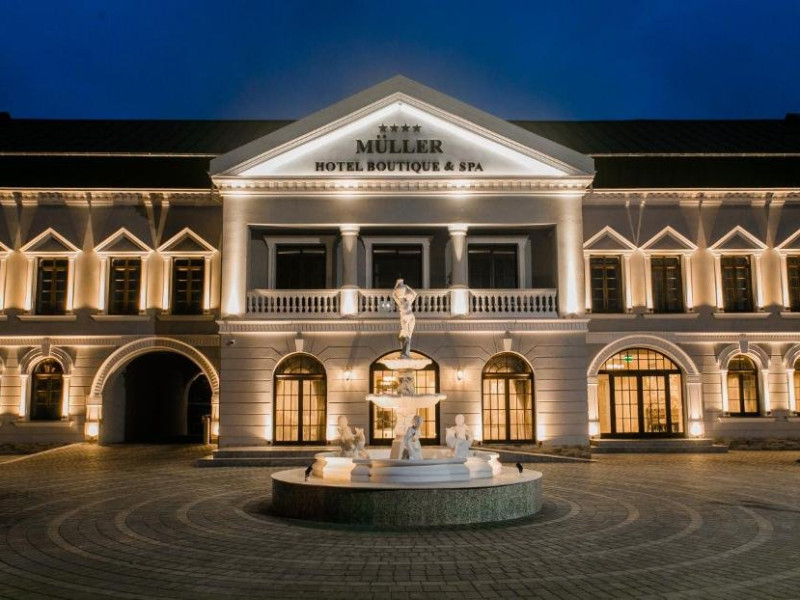 Muller Hotel este situat intr-o zona rezidential a orasului Galati. Construit pe o suprafata de 3000 mp care include o parcare privata gratuita, hotelul isi propune sa ofere o experienta de cazare elevata la cel mai inalt rang de confort si eleganta. Cu un design inspirat din elemente clasice dar cu dotari ultra-moderne, camerele sunt spatioase si primitoare, iar apartamentele invita la o atmosfera aristocratica dar foarte actuala. Restaurantul elegant, cafeneaua, spa-ul, centrul de seminarii si conferinte completeaz oferta si ridica si calitatea serviciilor la nivel de excelenta. Hotelul isi doreste sa fie mai mult decat o unitate de cazare exceptional. Cldirea poarta o semntur arhitecturala unica, cu respect pentru istoria locului si se doreste a fi un edificiu de referint in zona.